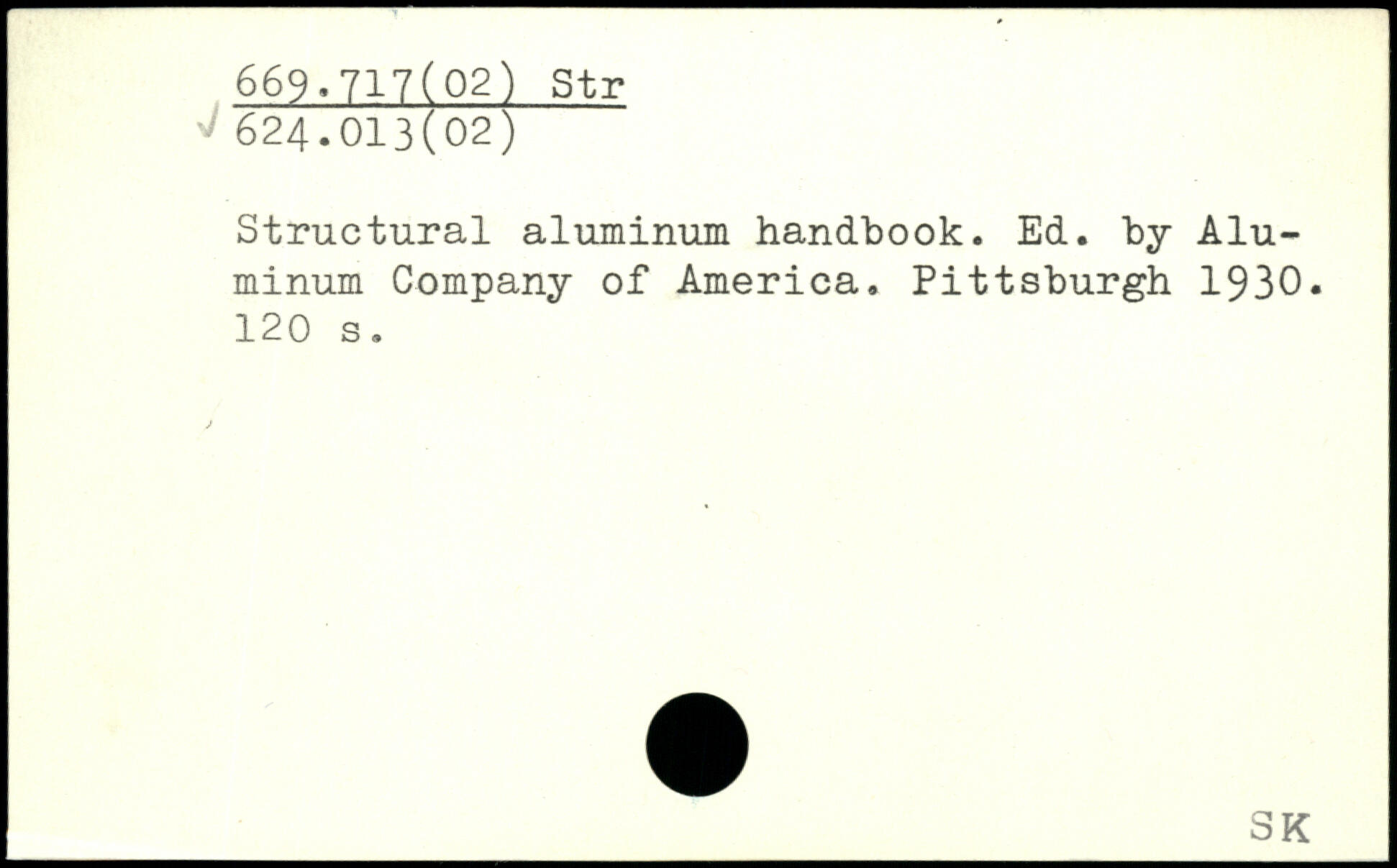 Structural aluminum handbook. Ed. by Aluminum Company of America. Pittsburgh 1930.