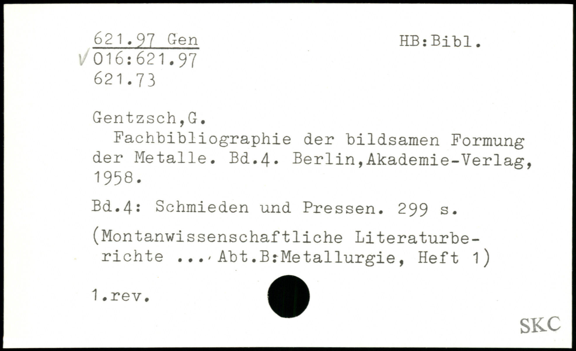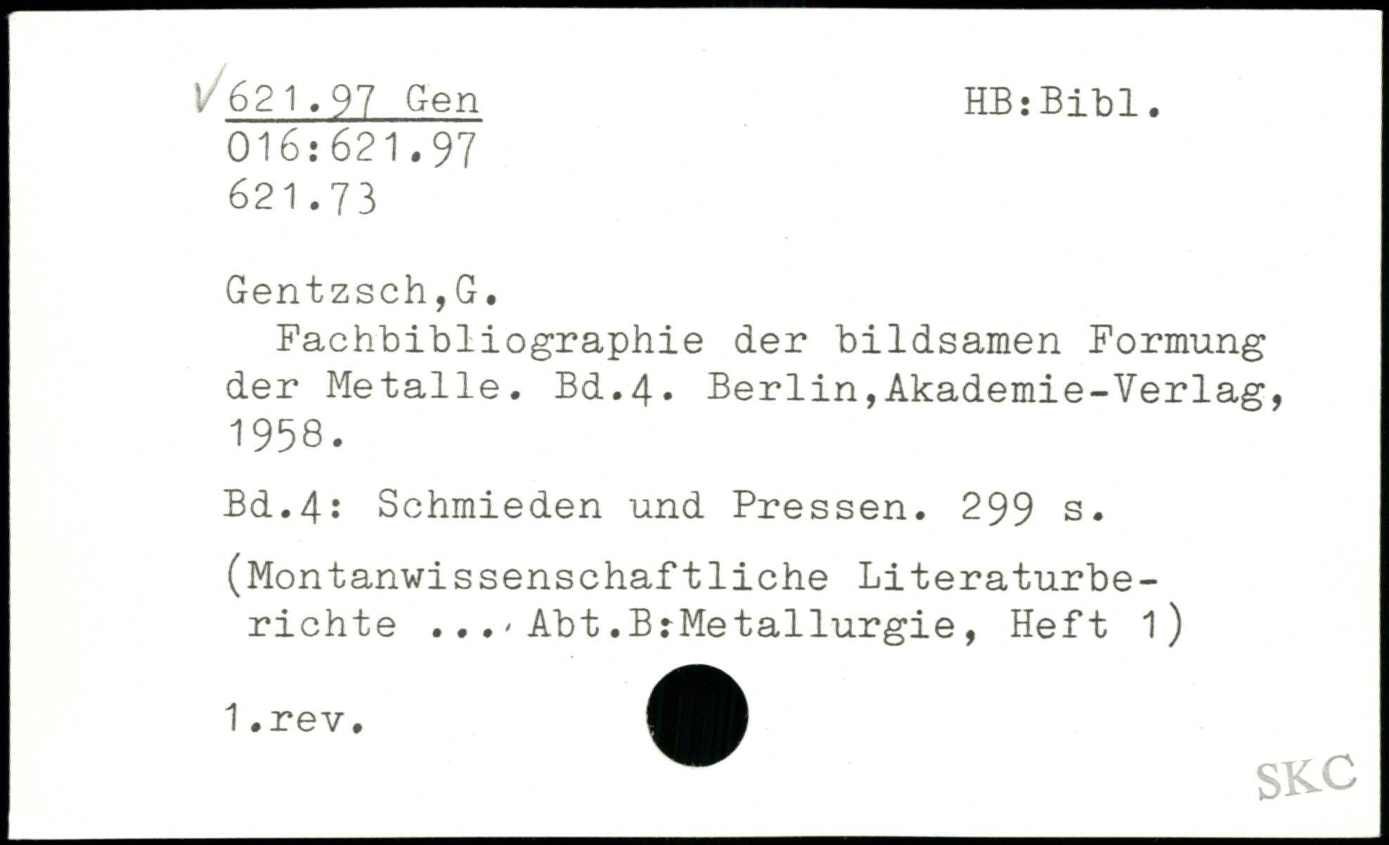 Fachbibliographie der bildsamen Formung der Metalle.