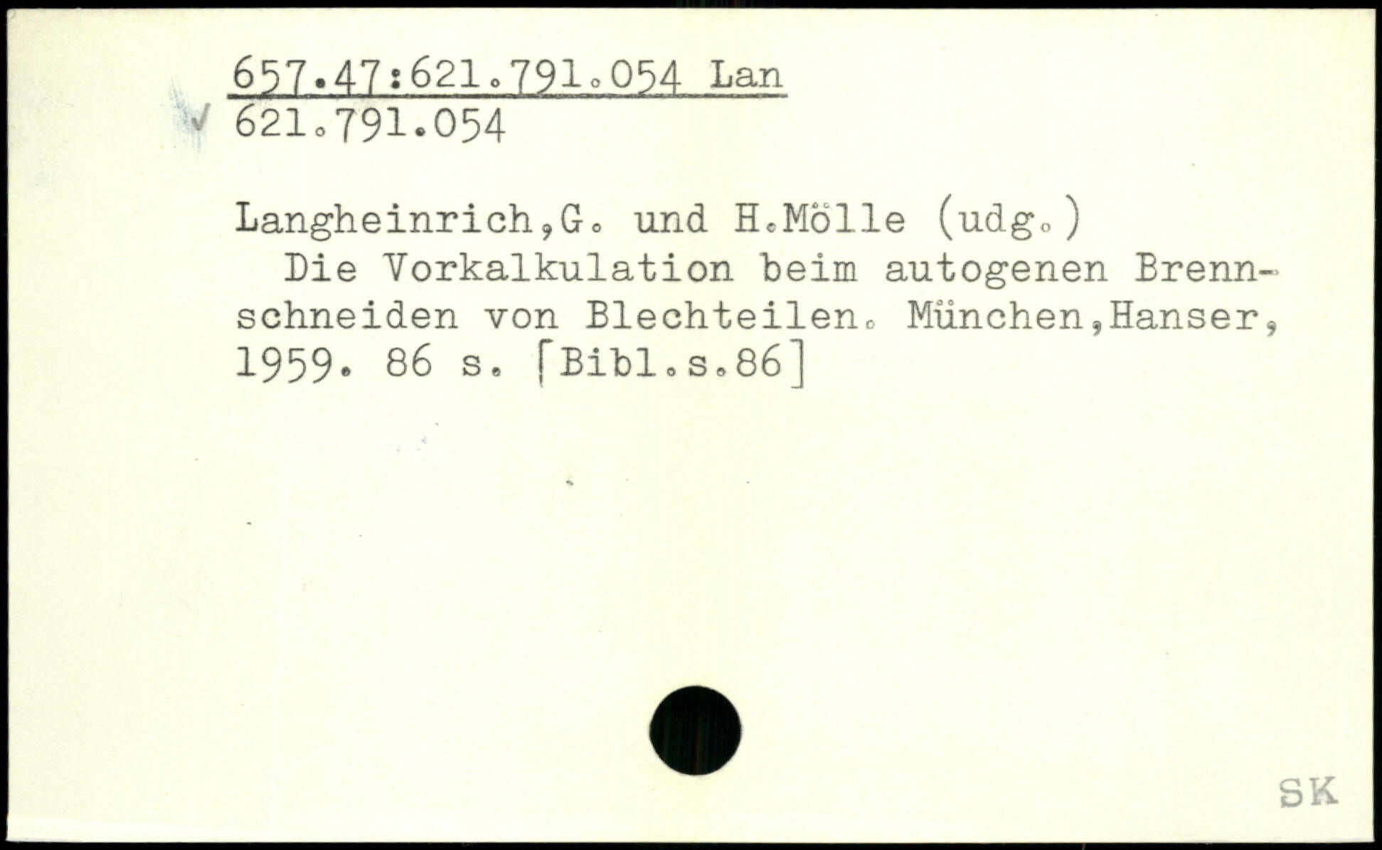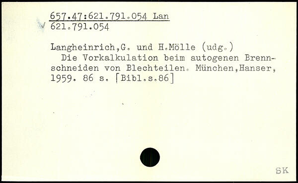 ! Langheinrich,G. und HcMölle (udg,) Die Vorkalkulation beim autogenen