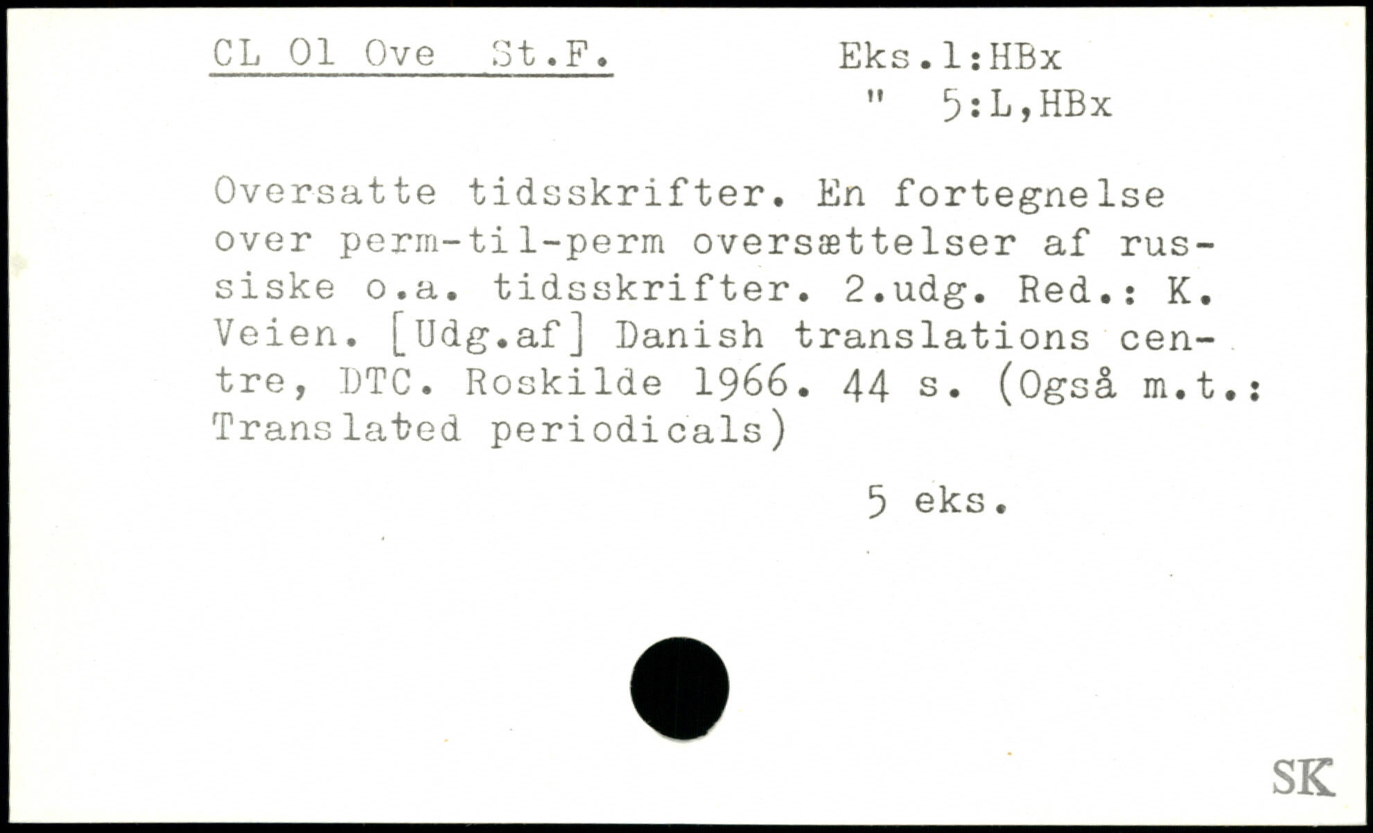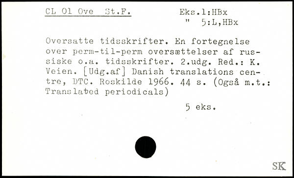 Oversatte tidsskrifter. En fortegnelse over perm-ti1-perm oversættelser af russiske o.a. tidsskrifter.