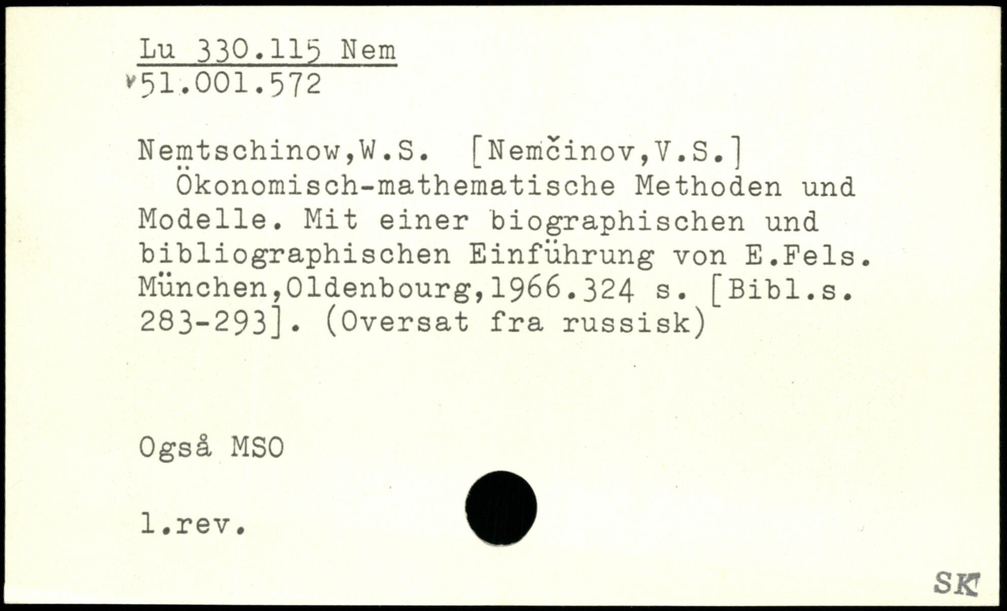 NemtschinoWjW.S. [Nemcinov,V.S.] Ökonomisch-mathematische Methoden und Modelle. Mit einer biographischen und bibliographischen Einführung von E.Fels.