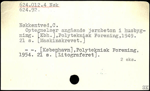 Optegnelser angående jernbeton i husbyg-ning. _Kbh.],Polyteknisk Forening,1949.