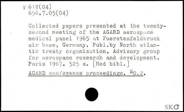 Collected, papers presented at the twenty-second meeting of the AGARD aerospace medical panel 1965 at Fuerstenfeldbruck air base, Germany.