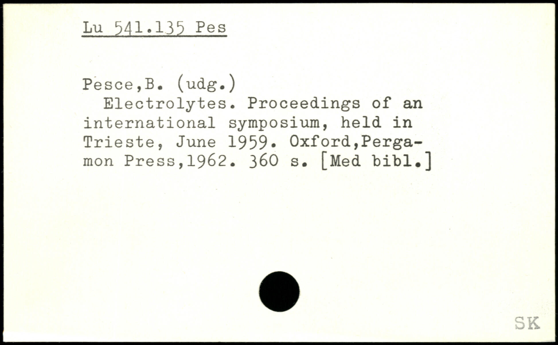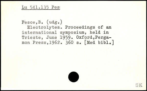 Electrolytes. Proceedings of an international Symposium, held in Trieste, June 1959.