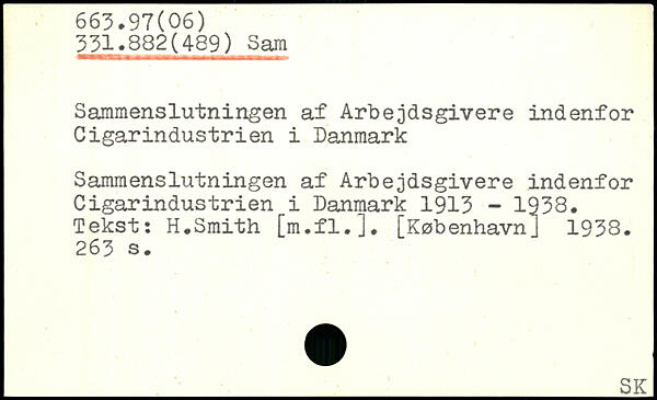 Sammenslutningen af Arbejdsgivere indenfor Cigarindustrien i Danmark Sammenslutningen af Arbejdsgivere indenfor Cigarindustrien i Danmark 1913 - 1938, Tekst: H.Smith [m.fl.].