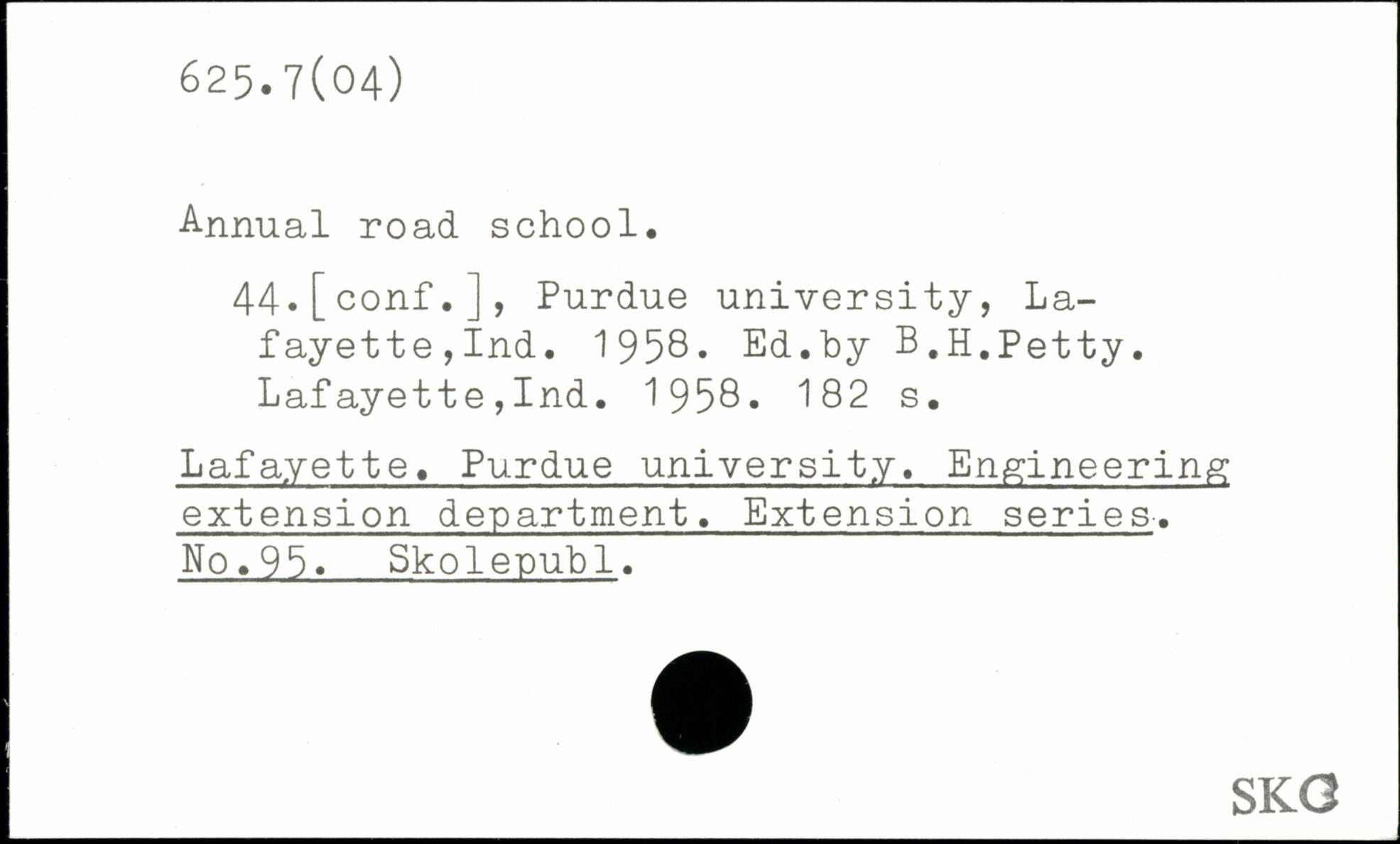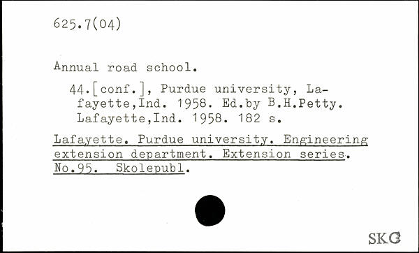 Annual road, school. 44.[conf.], Purdue university, Lafayette,Ind. 1958. Ed.by B.H.Petty. Lafayette,Ind. 1958