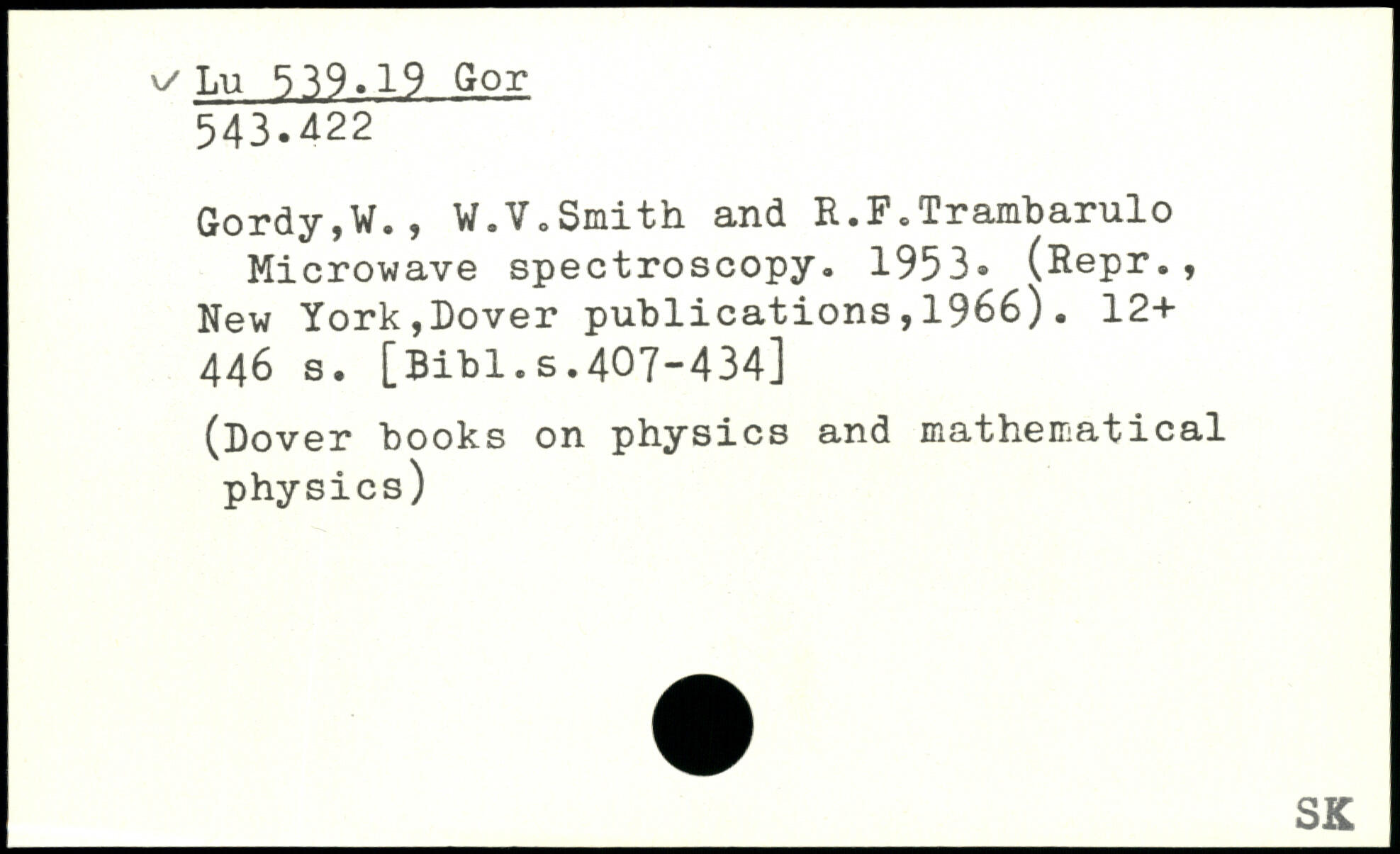 Gordy,W., W.VoSmith and R.F.Trambarulo Microwave spectroscopy. 1953. (