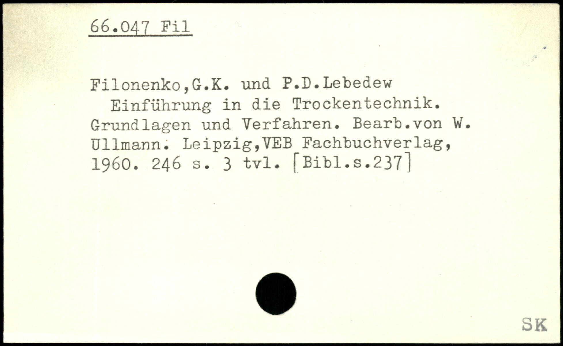 Einführung in die Trockentechnik. Grundlagen und Verfahren. Bearb.von W. Ullmann.
