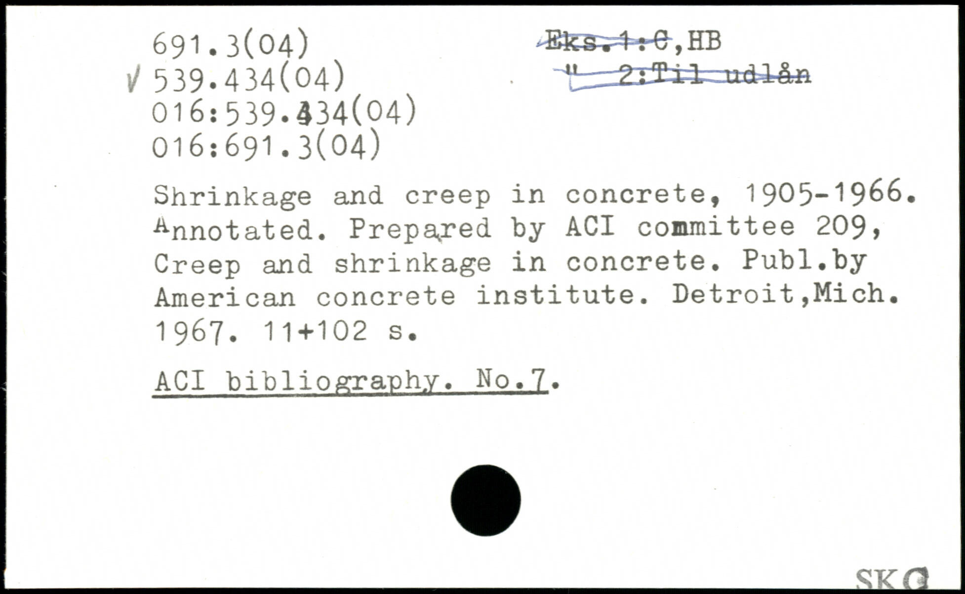 Shrinkage and creep in concrete, 1905-1966. Annotated. Prepared by ACI committee 209, Creep and shrinkage in concrete.