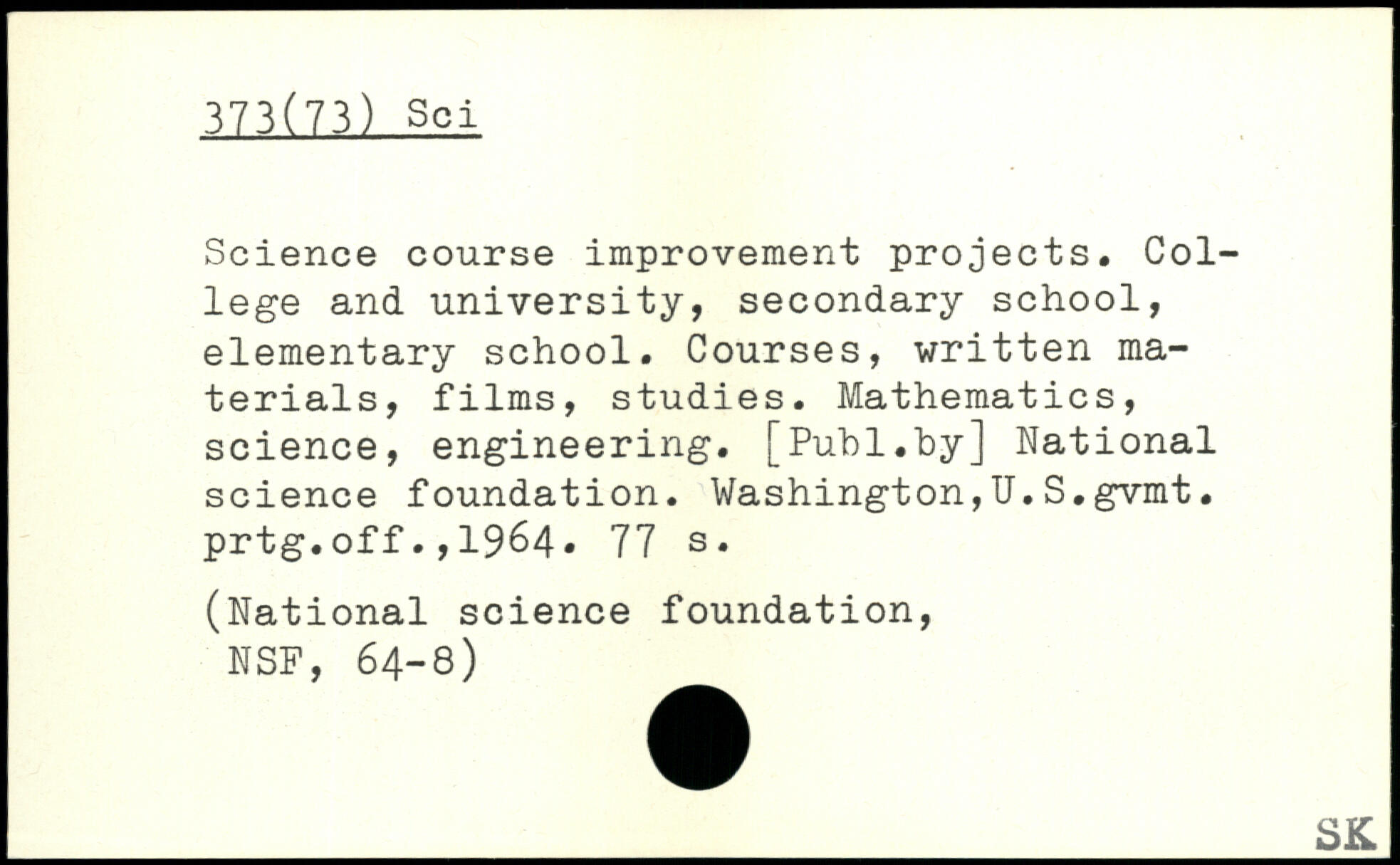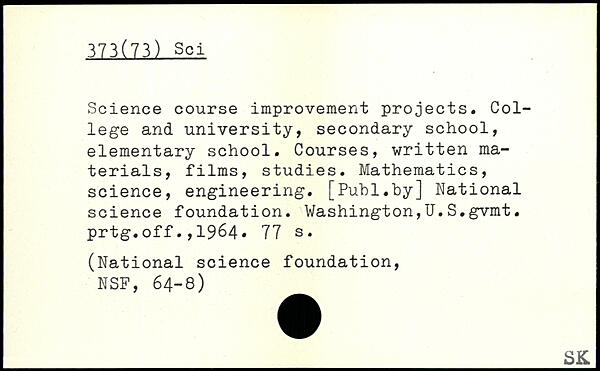 Science course improvement projects. College and university, secondary school, elementary school. Courses, written materials, films, studies. Mathematics, science, engineering.