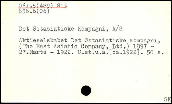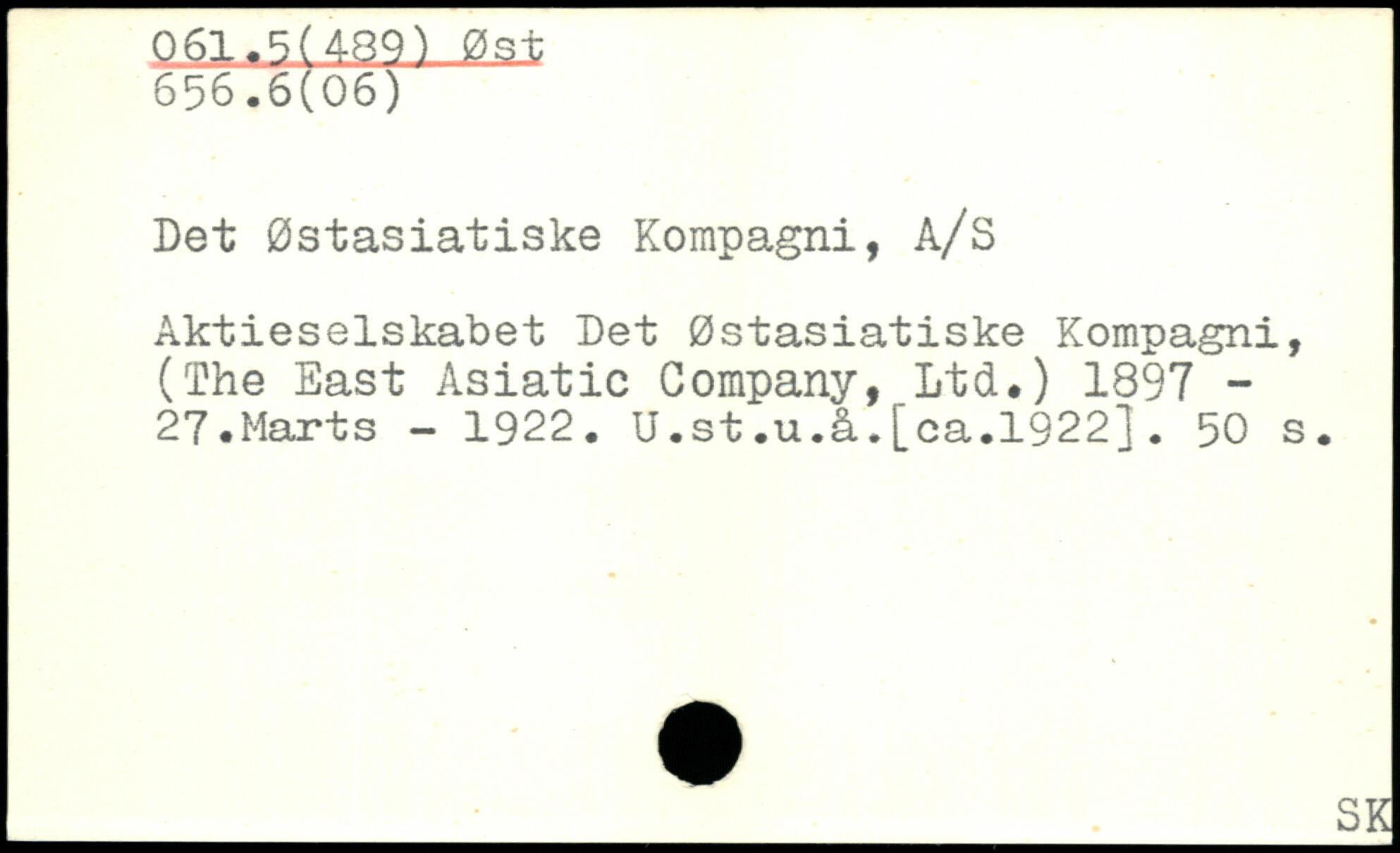 Det Østasiatiske Kompagni, A/S Aktieselskabet Det Østasiatiske Kompagni, (The East Asiatic Gompany, Ltd.) 1897 -27.Marts - 1922. U.st.u.å.[ca.1922].