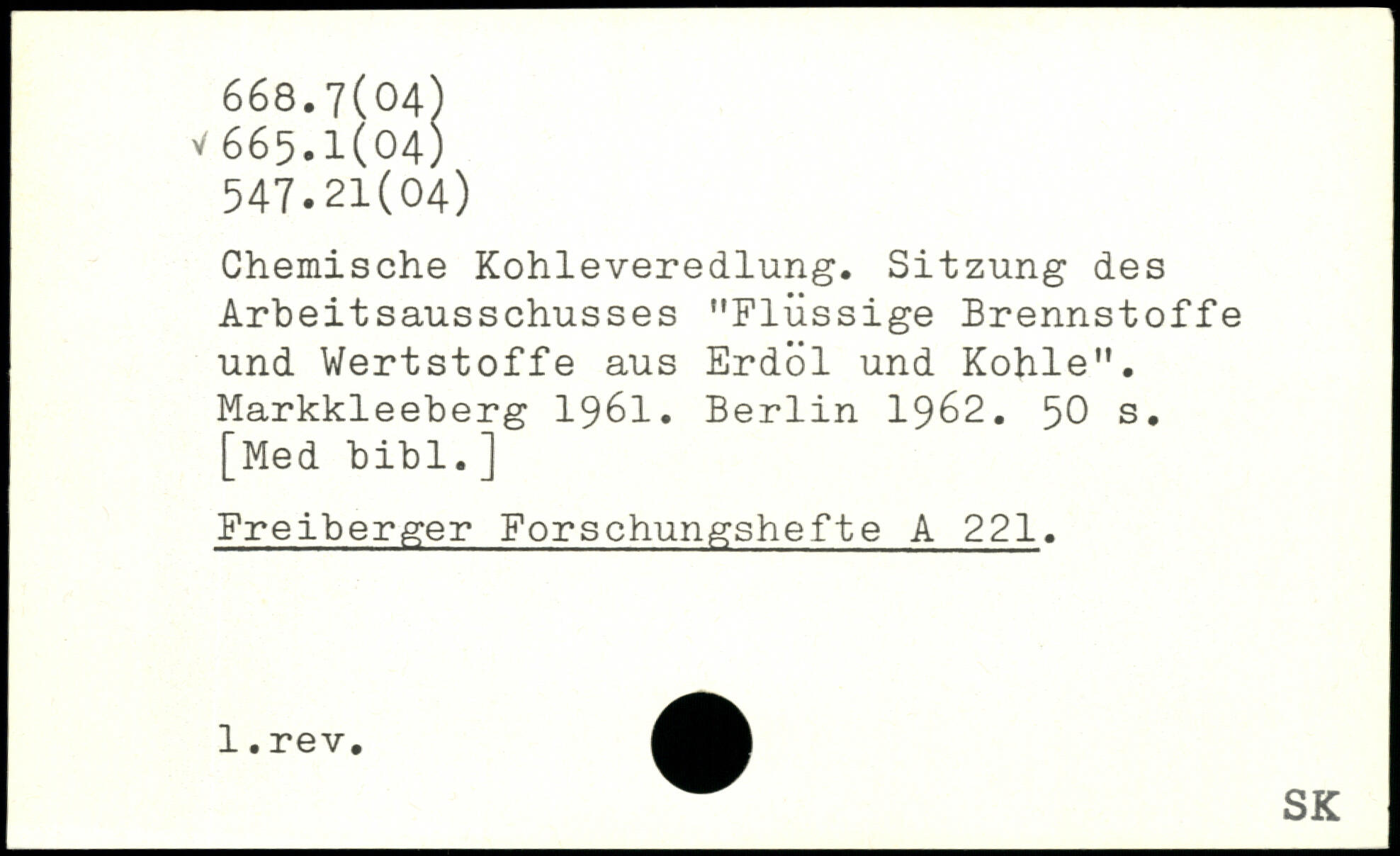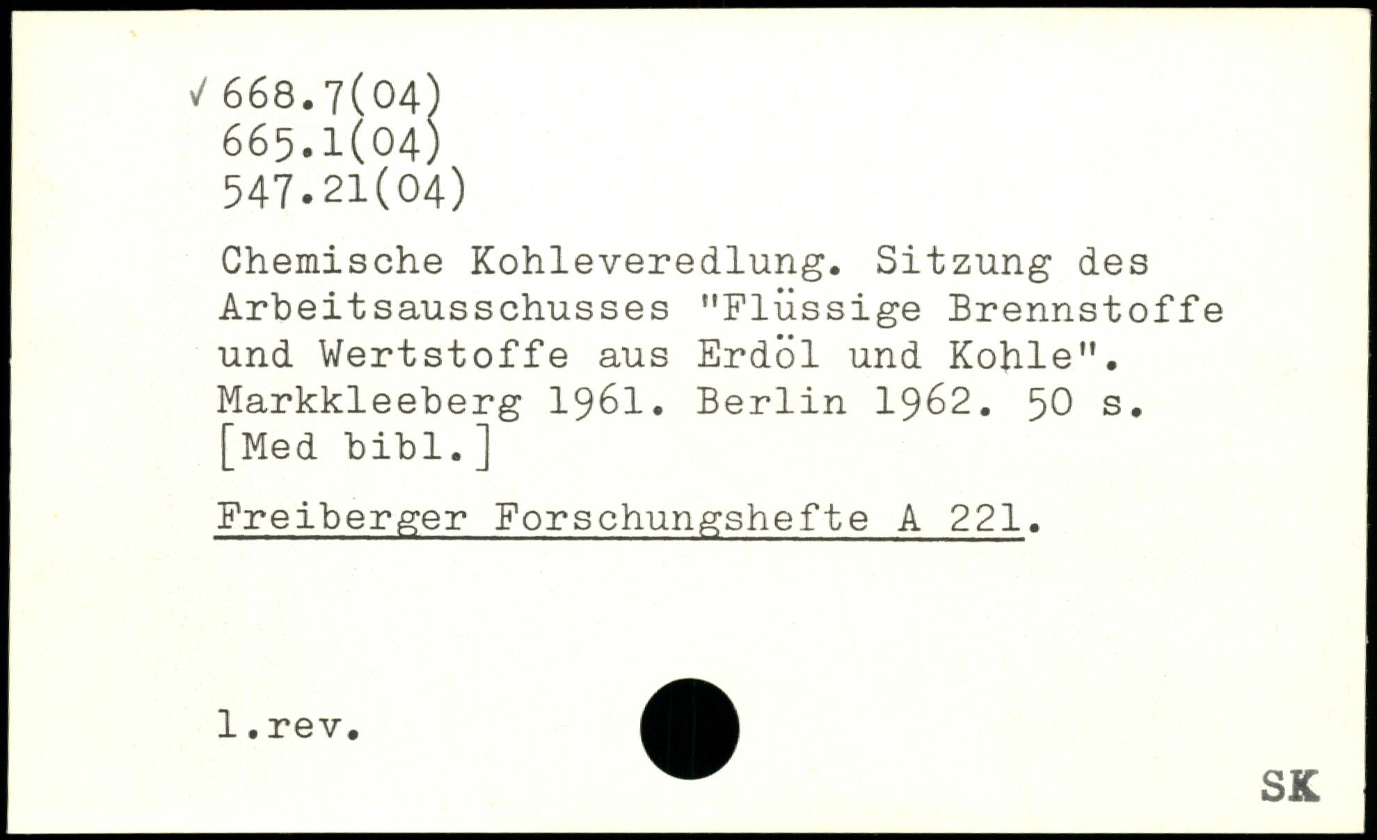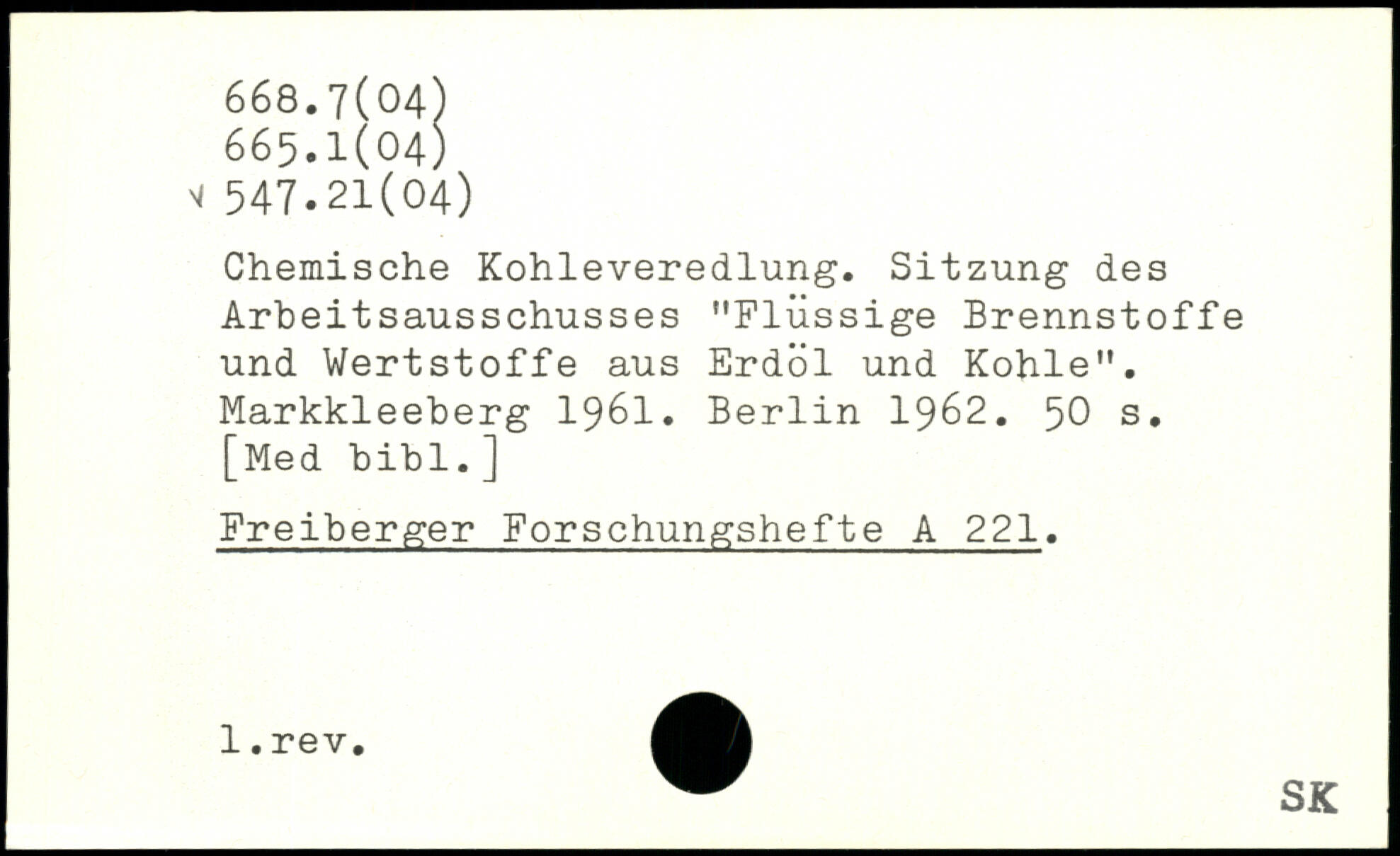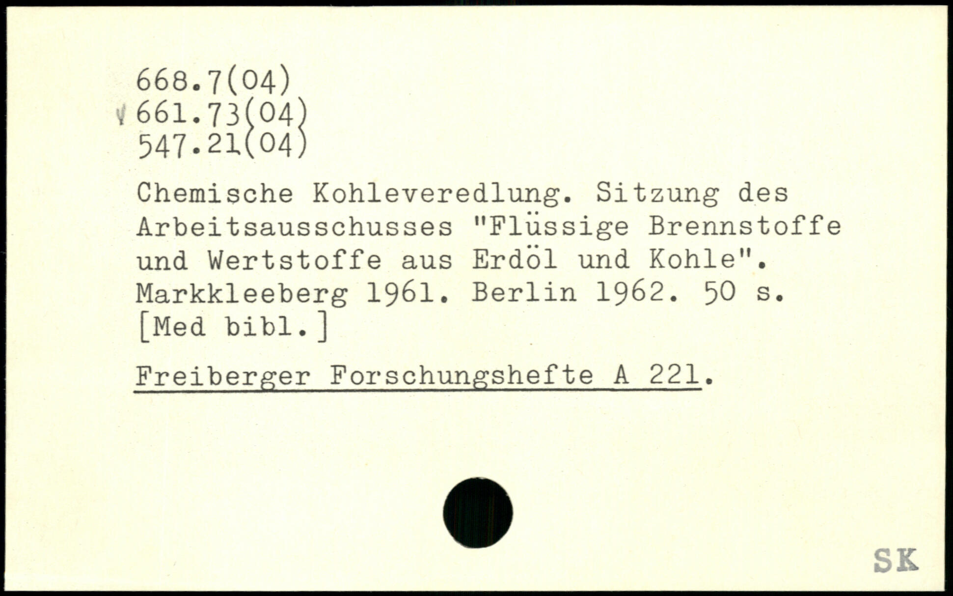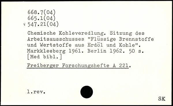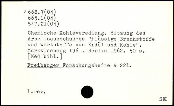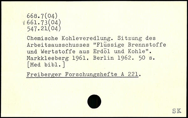 Chemische Kohleveredlung. Sitzung des Arbeitsausschusses "Flüssige Brennstoffe und Wertstoffe aus Erdöl und Kohle". Markkleeberg 1961.