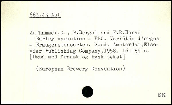 Barley varieties - EBC. Varietés d’orges - Braugerstensorten.