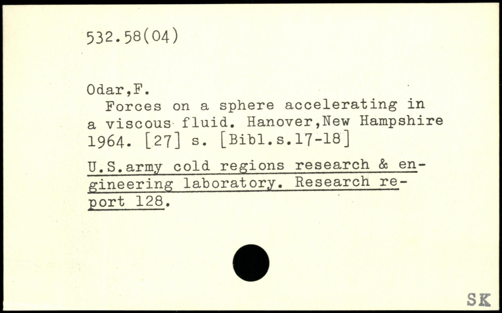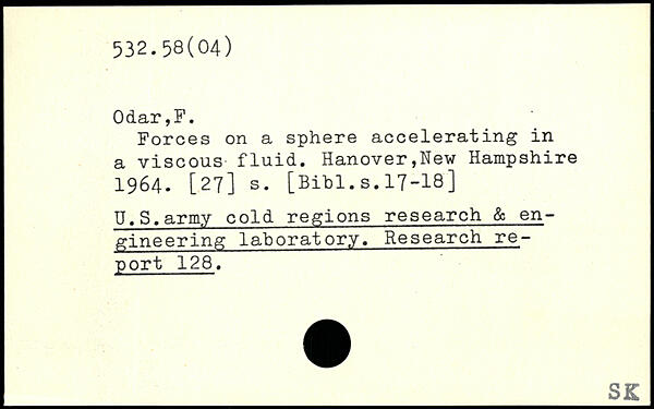 Forces on a sphere accelerating in a viscous fluid. Hanover,New Hampshire 1964. [27] s.