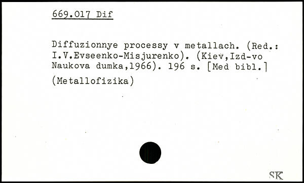 Diffuzionnye processy v metallach. (Red.: I.V.Evseenko-Misjurenko). (