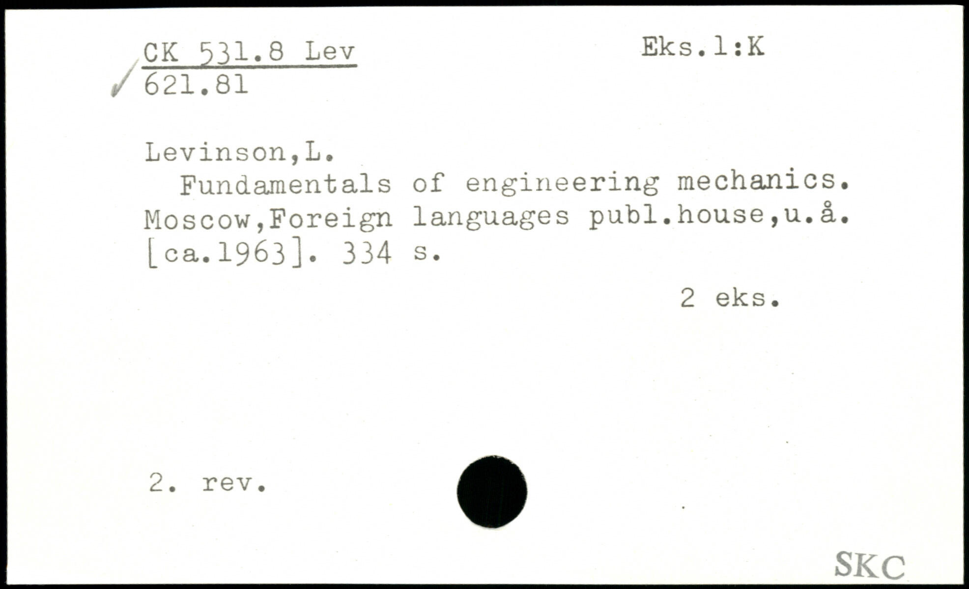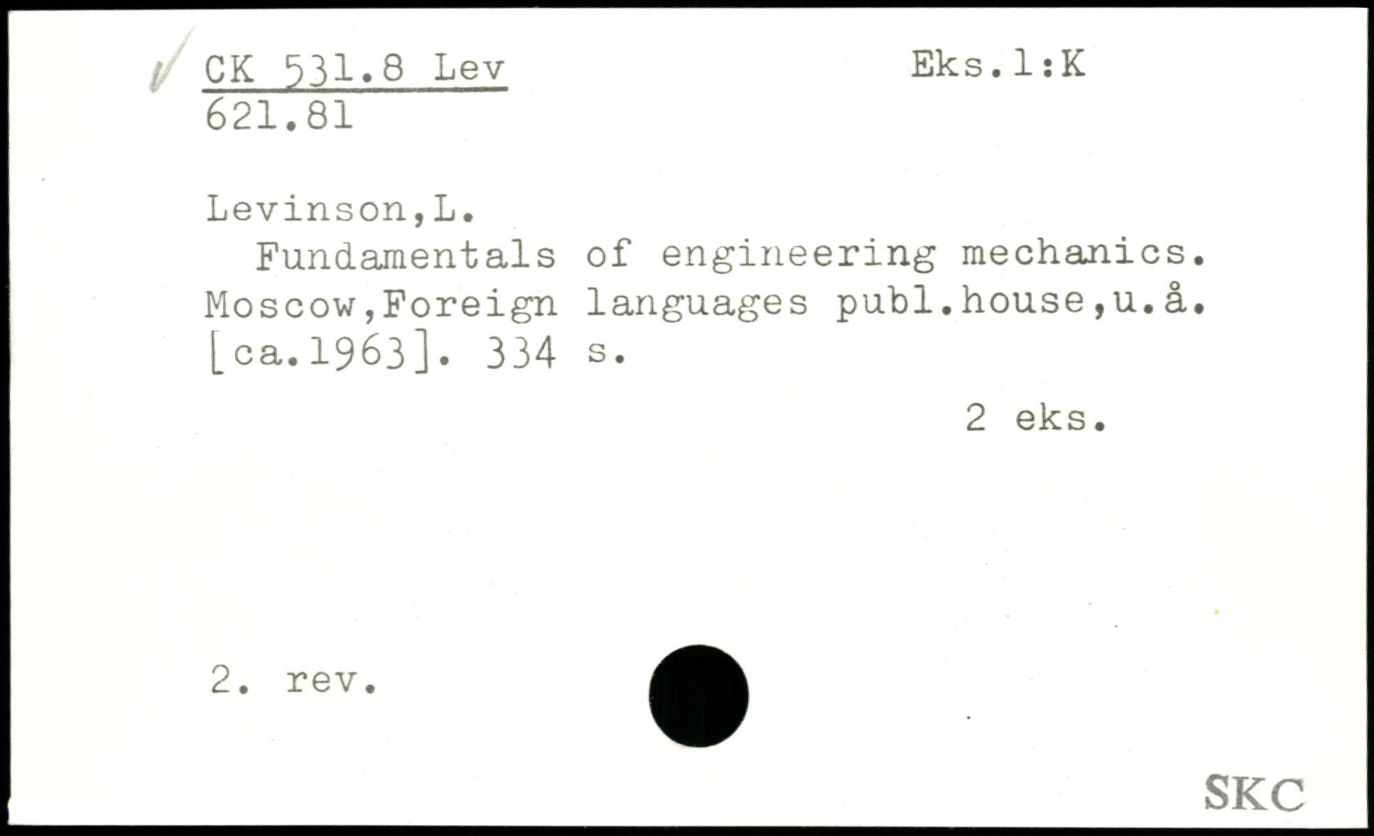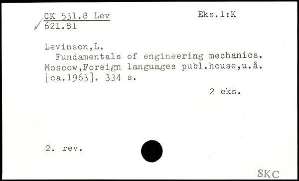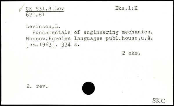 Fundamentals of engineering mechanics. Moscow,Foreign languages publ.house,u.a. [ca.1963].