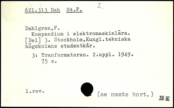 Kompendium i elektromaskinl’åra. [Del] 3. Stockholm,Kungl.tekniska högskolans studentkår. 3: Tranformatoren.