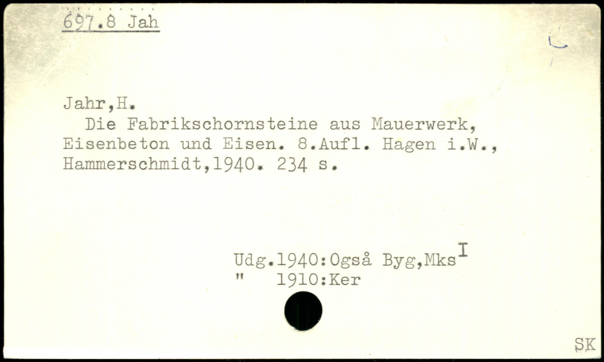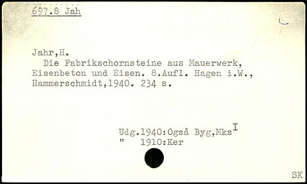 f. ....... T v 697.5 Jah Jahr,H, Die Fabrikschornsteine aus Mauerwerk, Eisenbeton und Eisen.
