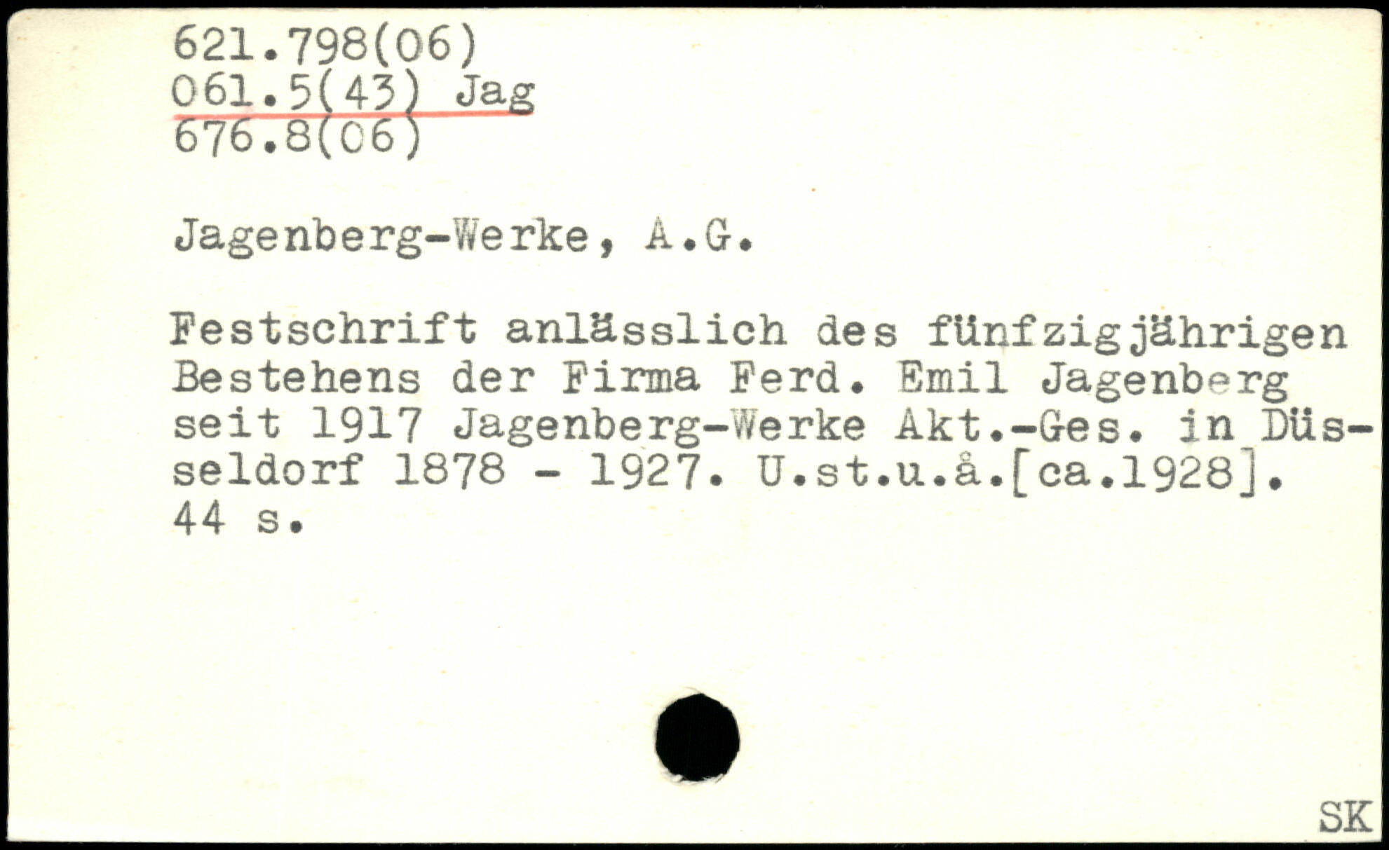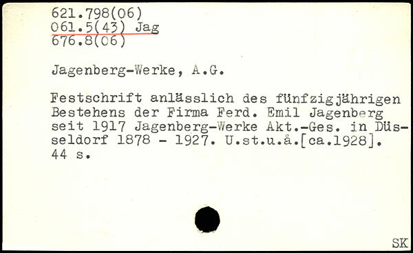Jagenberg-Werke, A.G. Festschrift anlässlich des fünfzigjährigen Bestehens der Firma Ferd. Emil Jagenberg seit 1917 Jagenberg-Werke Akt.-Ges. in Düsseldorf 1878 - 1927. U.st.u.a.[ca.1928].