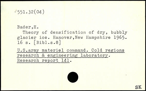 Theory of densification of dry, bubbly glacier ice. Hanover,New Hampshire 1965