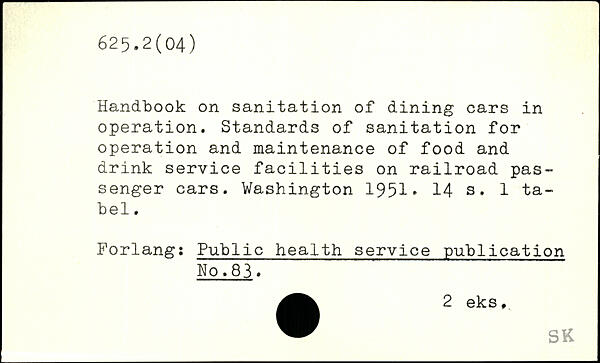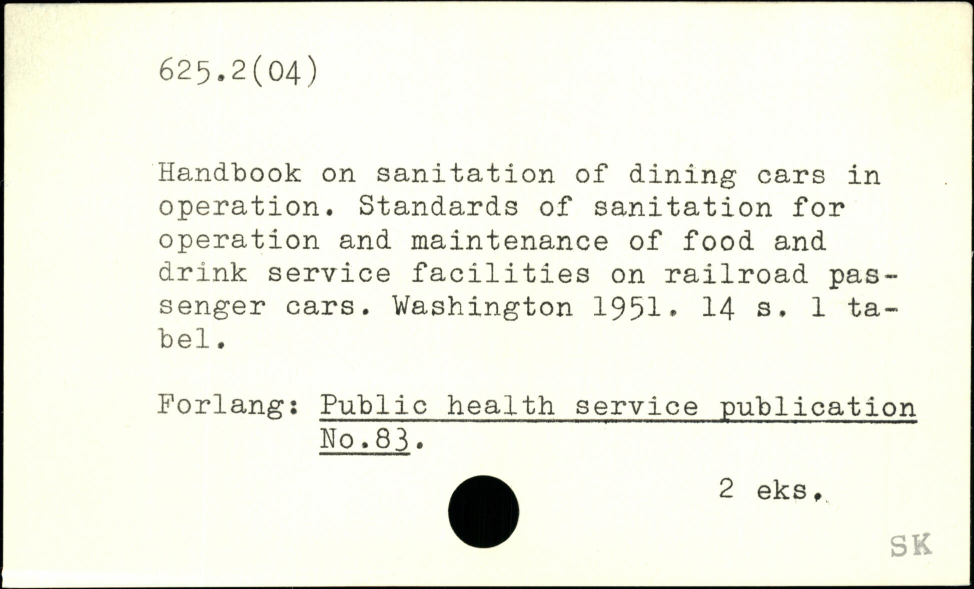 Handbook on sanitation of dining cars in operation. Standards of sanitation for operation and maintenance of food and drink service facilities on railroad passenger cars.
