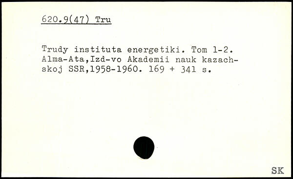 Trudy instituta energetiki. Tom 1-2. Alma-Ata,Izd-vo Akademii nauk kazach-skoj SSR,1958-1960. 169 +