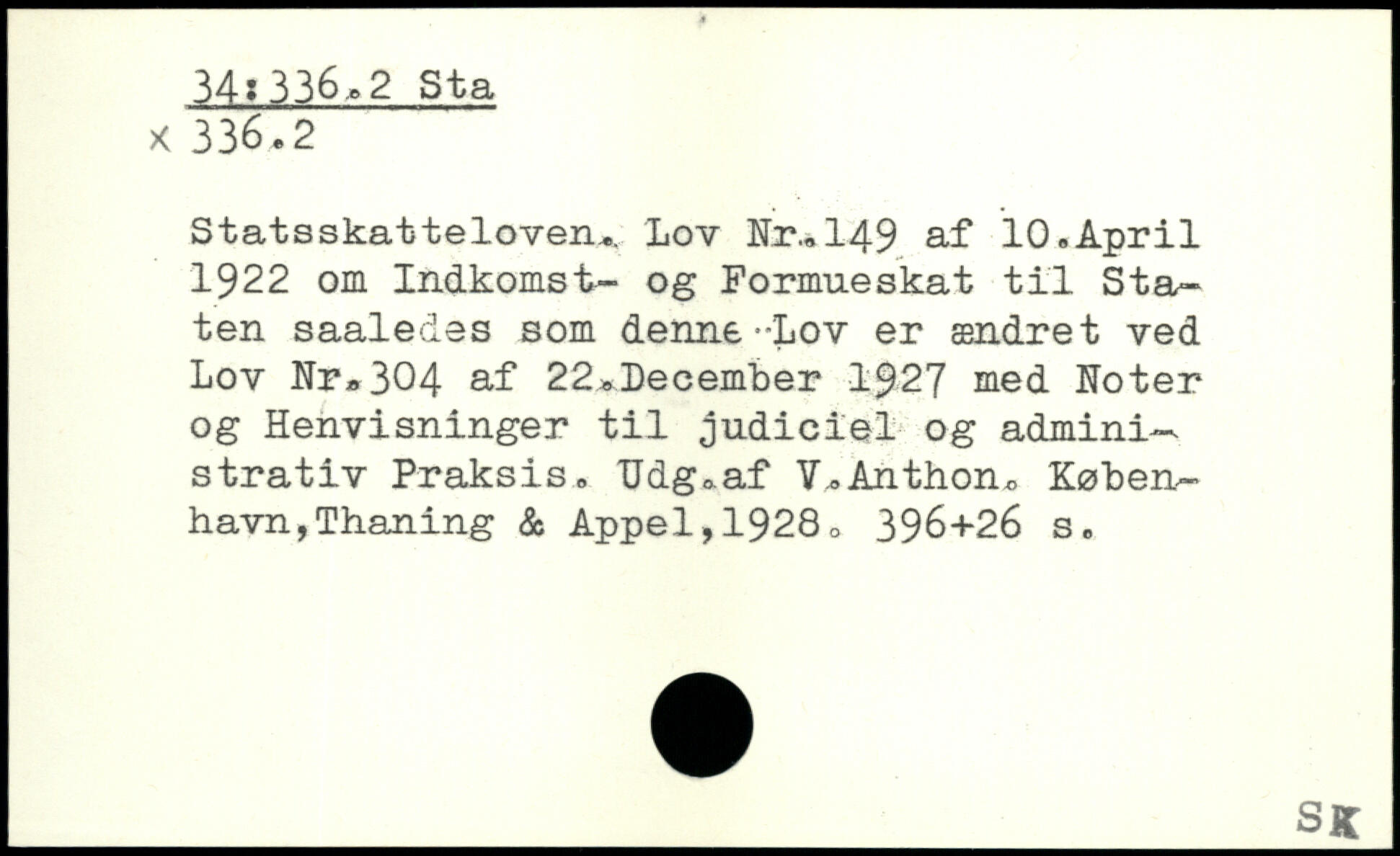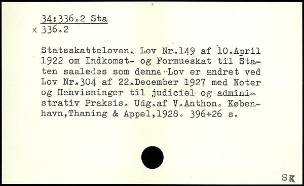 Statsskatteloven... Lov Nr.. 149 af 10.April 1922 om Indkomst- og Formueskat til Staten saaledes som denne .-Lov er ændret ved Lov Nr, 304 af 22,I)ecember 1927 med Noter og Henvisninger til judiciel og administrativ Praksis. TJdg.af V