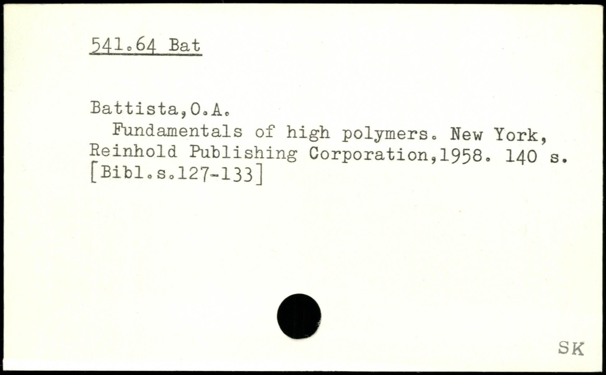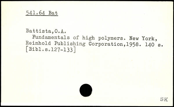 Fundamentals of high polymers, New York, Reinhold Publishing Corporation,1958. 140 s. [BUI. a.127-133]