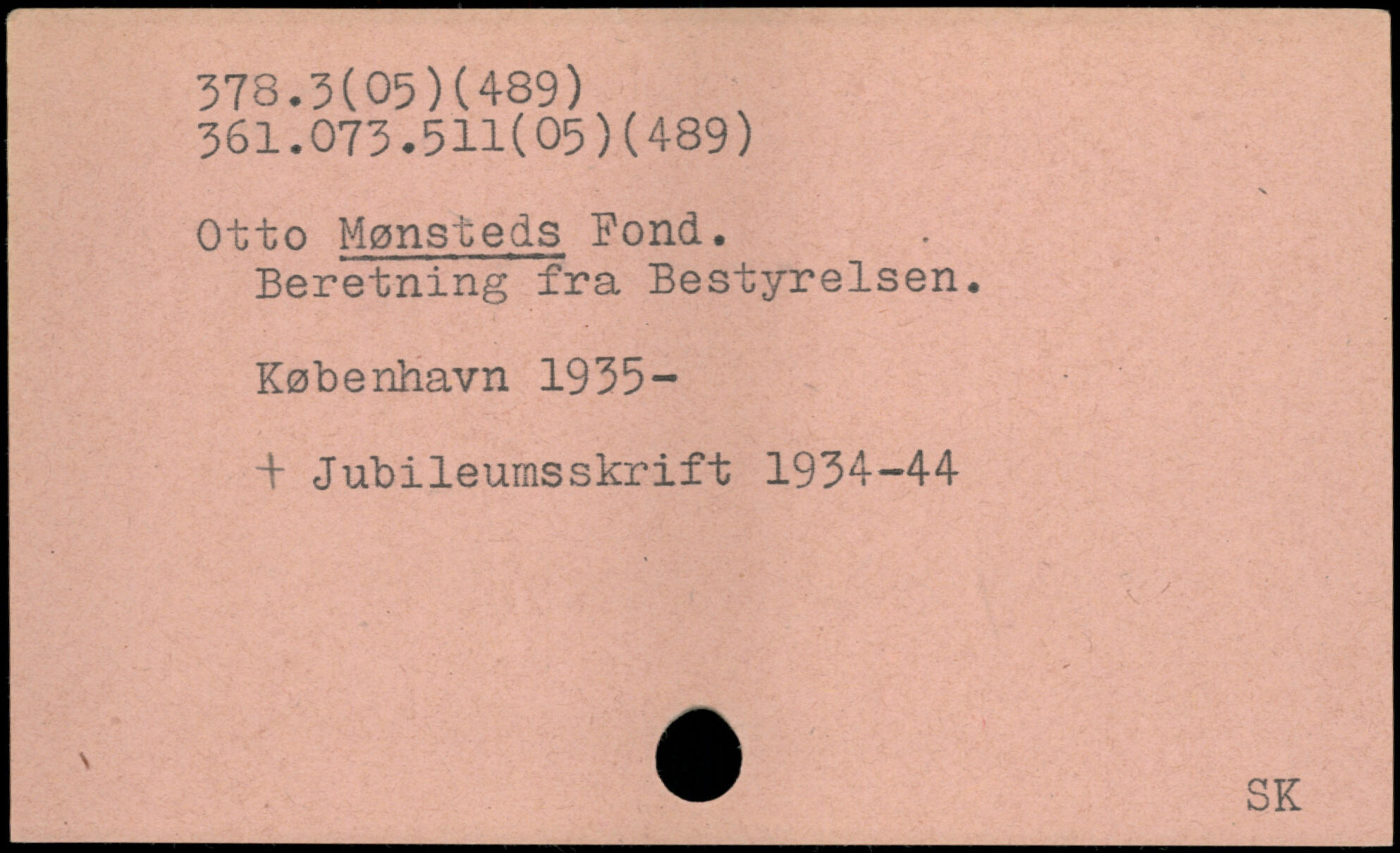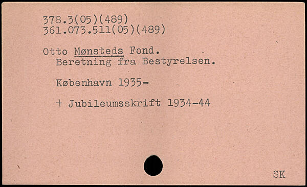 Otto Mønsteds Pond. Beretning fra Bestyrelsen.