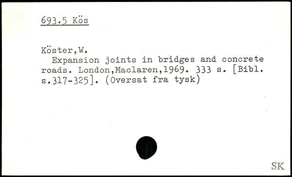 Expansion joints in bridges and concrète roads. London,Maclaren,19&9.