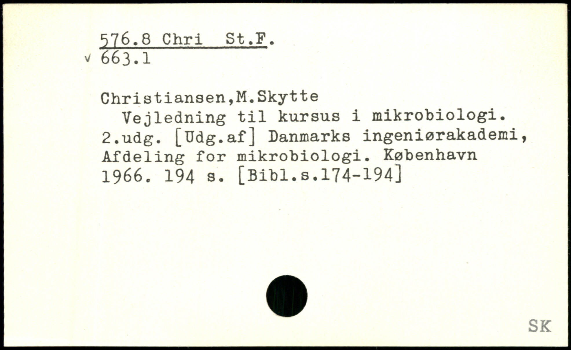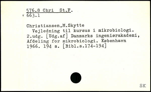 Christiansen,M.Skytte Vejledning til kursus i mikrobiologi.