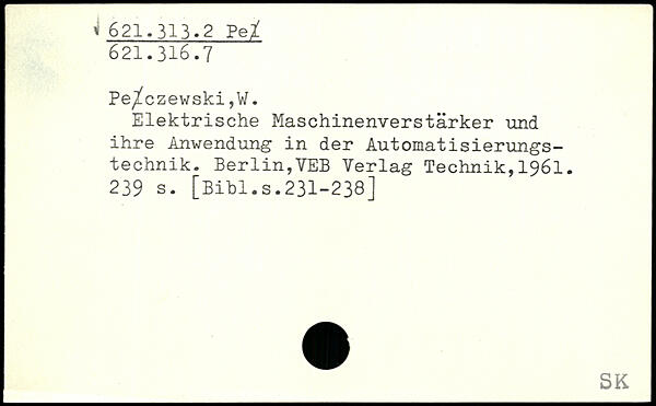 Pe^czewski,W. Elektrische Maschinenverstärker und ihre Anwendung in der Automatisierungs-technik.