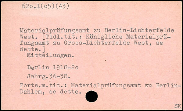 Materialprüfungsamt zu Berlin-lichterfelde West. [Tidl.tit.: Königliche Materialprüfungsamt zu G-ross-Lichterfelde West, se dette.] Mitteilungen.