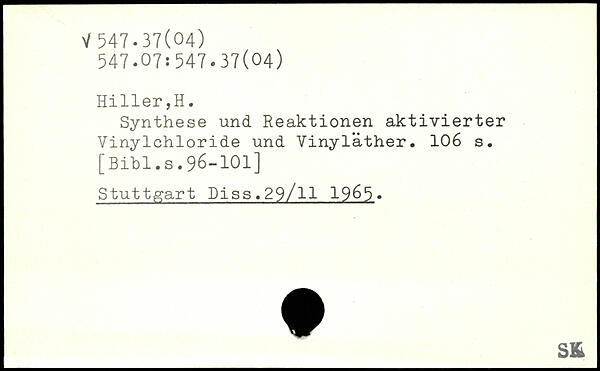 Synthese und Reaktionen aktivierter Vinylchloride und Vinyläther.