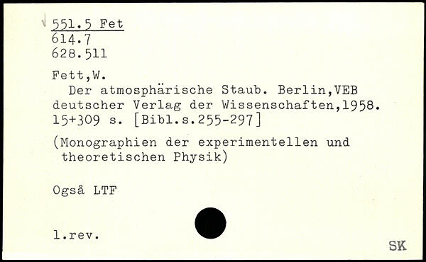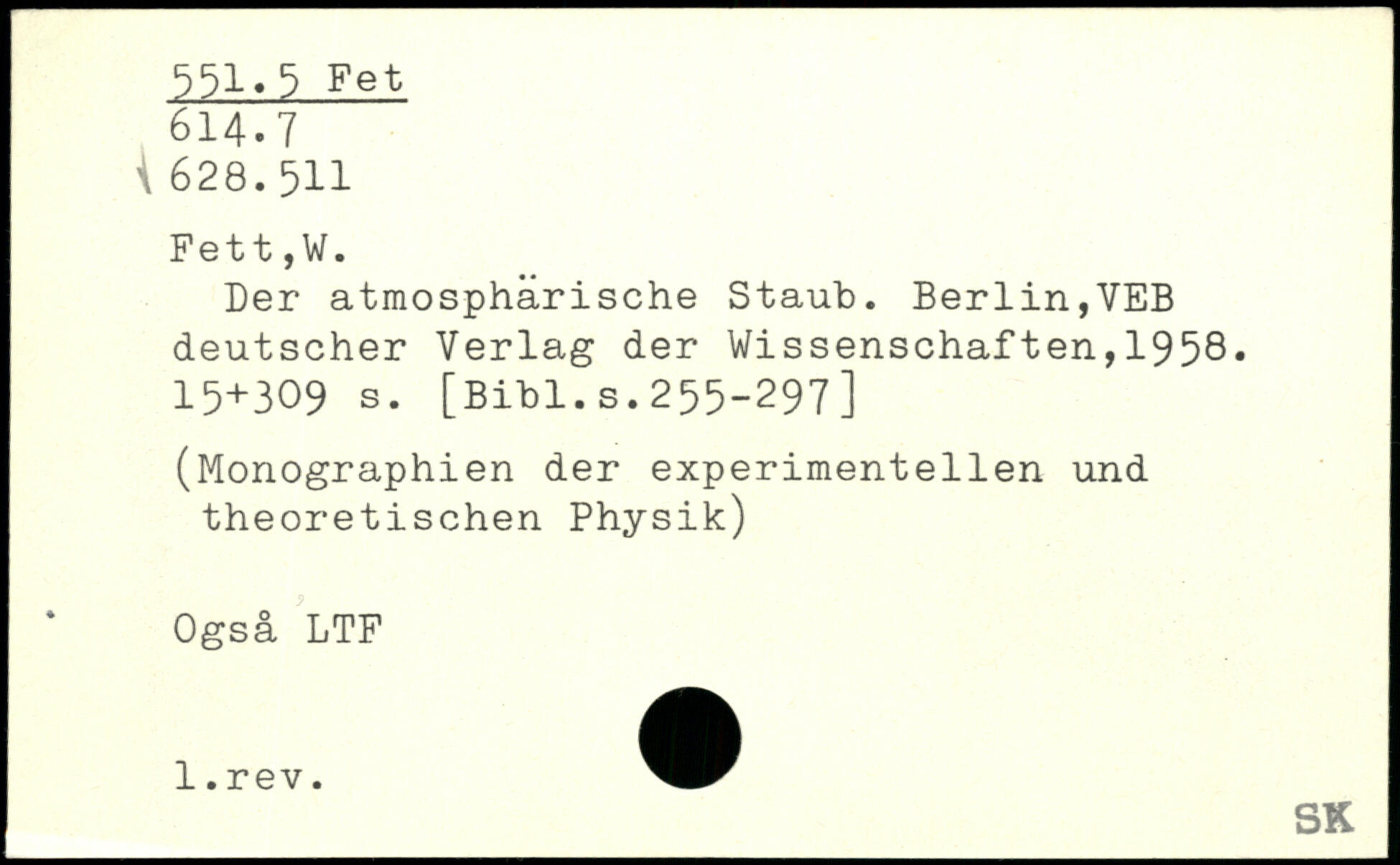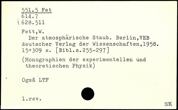 Der atmosphärische Staub. Berlin,VEB deutscher Verlag der Wissenschaften,1958