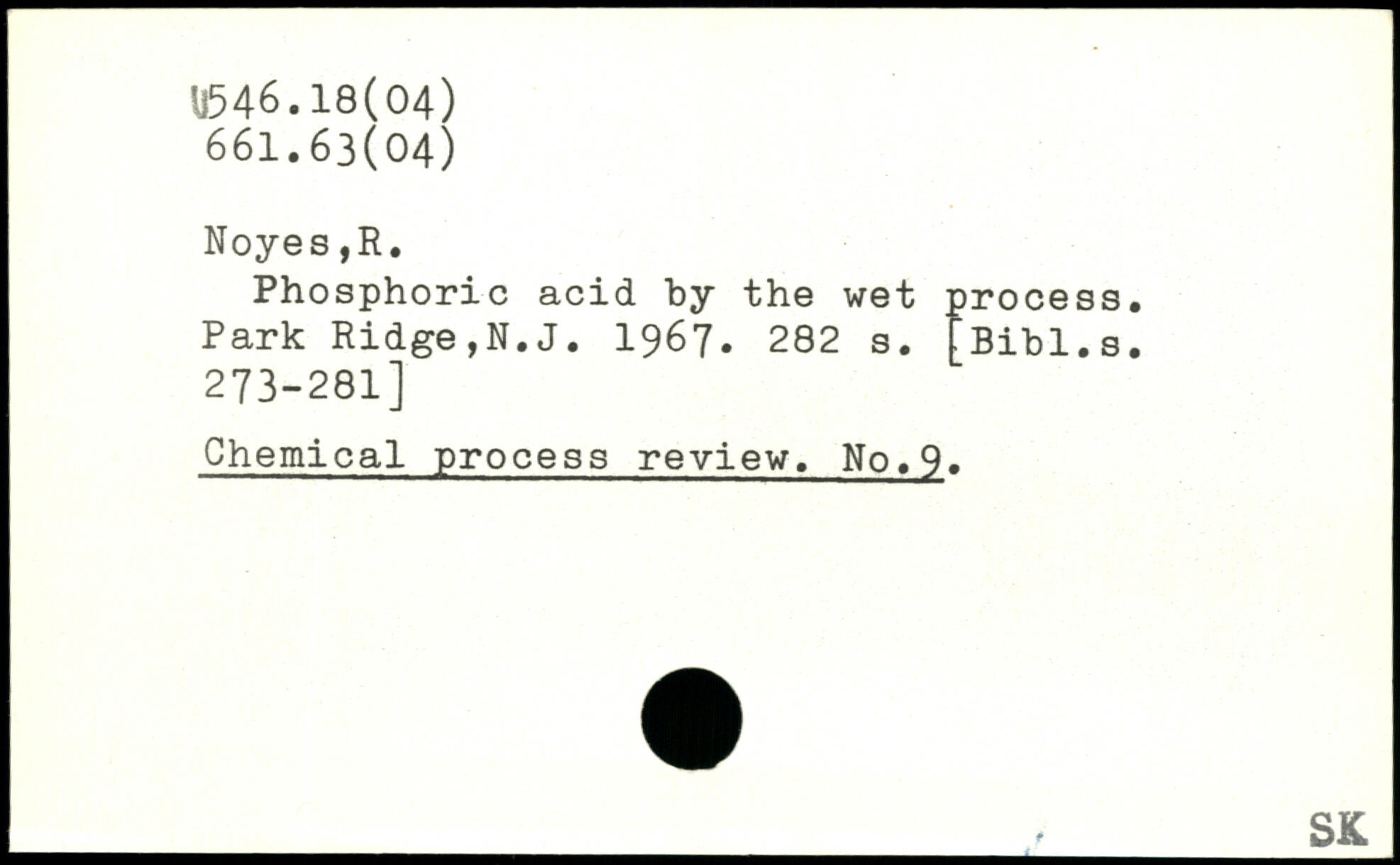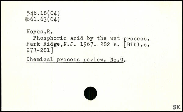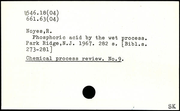 Phosphoric acid by the wet process. Park Ridge,N.J. 1967.