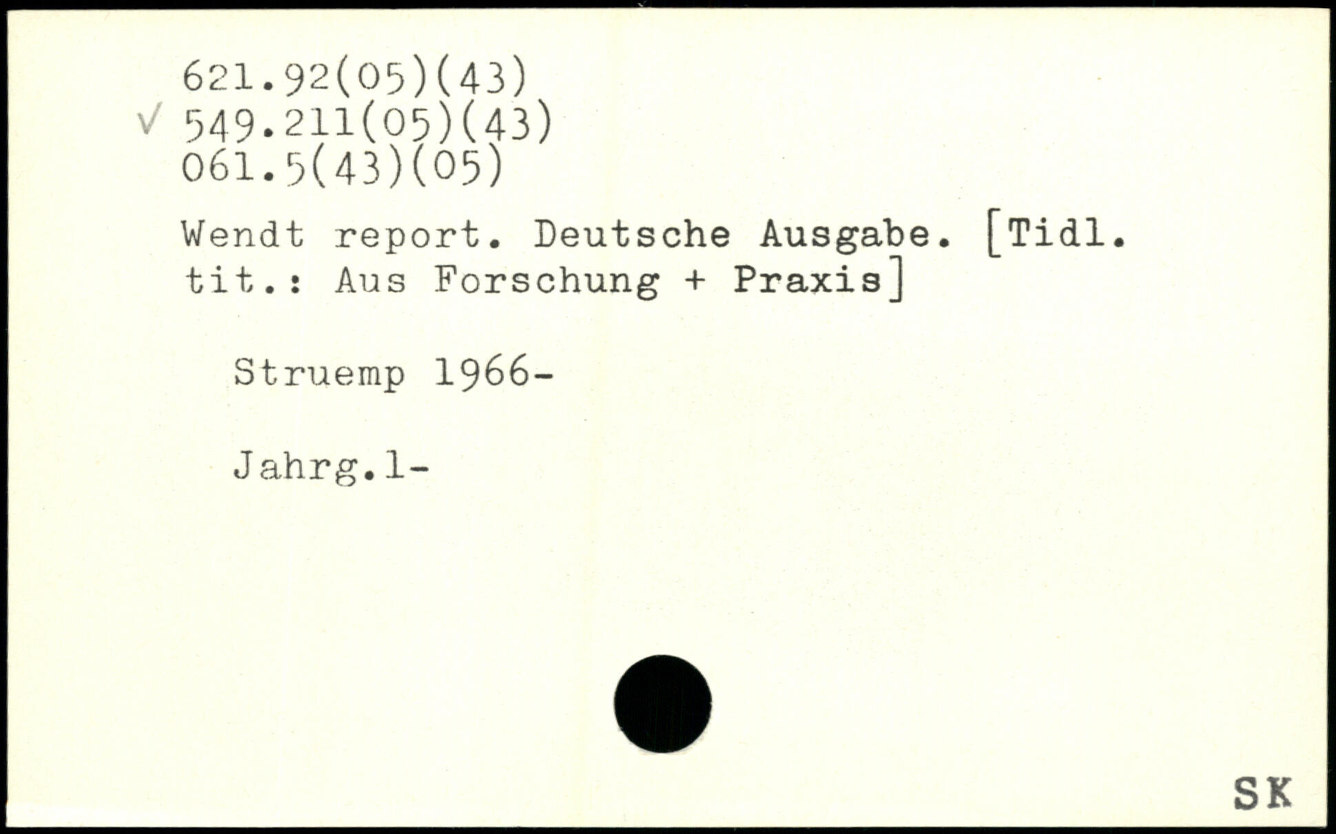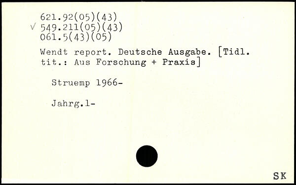 Wendt report. Deutsche Ausgabe. [Tidl. tit.i Aus Forschung + Praxis] Struemp 1966- Jahrg.1-