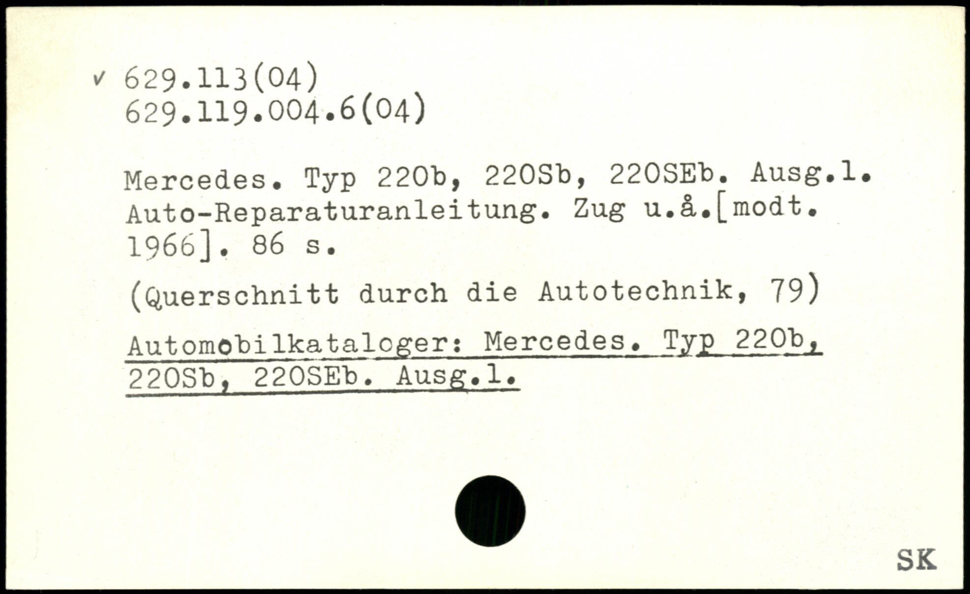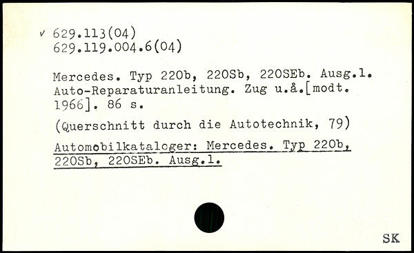 Mercedes. Typ 220b, 220Sb, 220SEb. Ausg.l. Auto-Reparaturanleitung. Zug u.â.[modt. 1966].