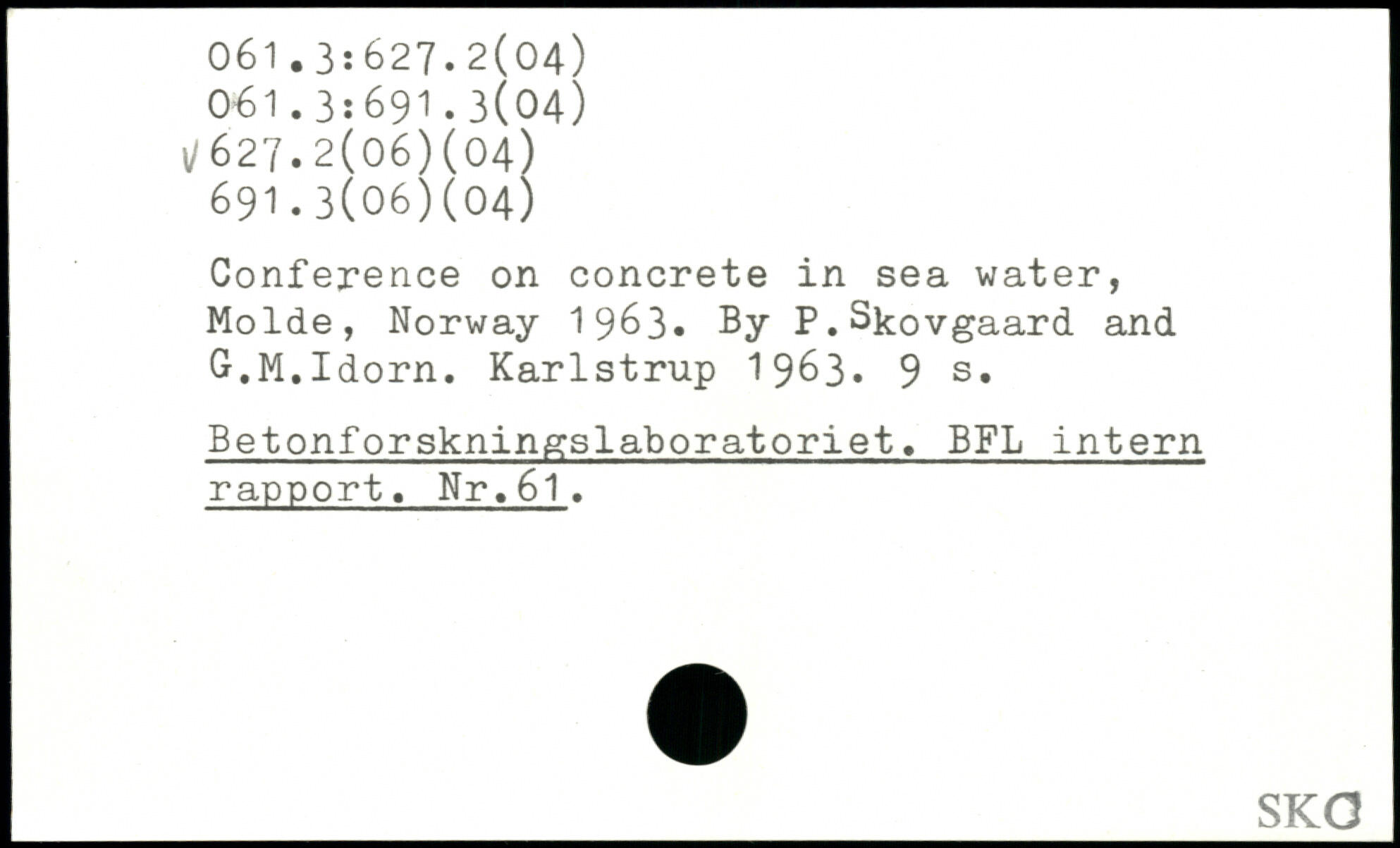 Conference on concrete in sea water, Molde, Norway 1 963. By P.Skovgaard and G.M.Idorn. Karlstrup 1963.