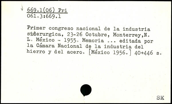 Primer congre so nacional de la indus tria stàerurgica, 23-26 Octubre, Monterrey,N0 Lo Mexico - 1955. Memoria ... editada por la Camara Nacional de la industria del hierro y del acero. [Mexico 1956,]