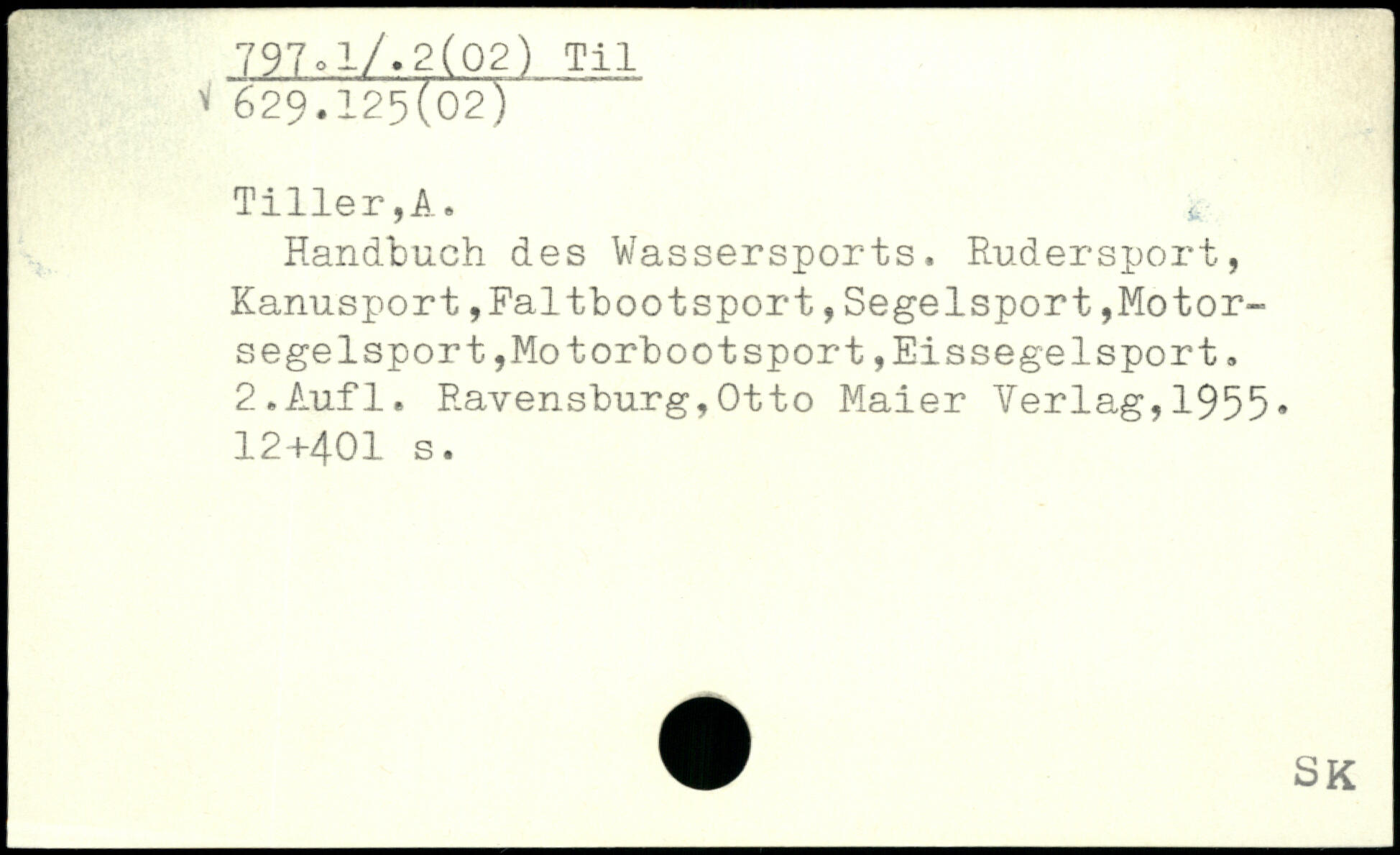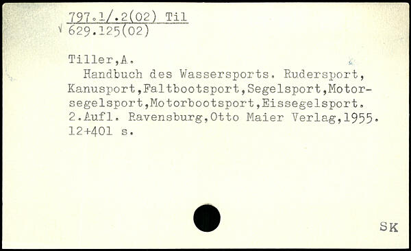 Tiller,A. u Handbuch des Wassersports. Rudersport, Kanusport,Faltbootsport,Segelsport,Motorsege 1sport,Motorbootsport ,Eissegelsport.