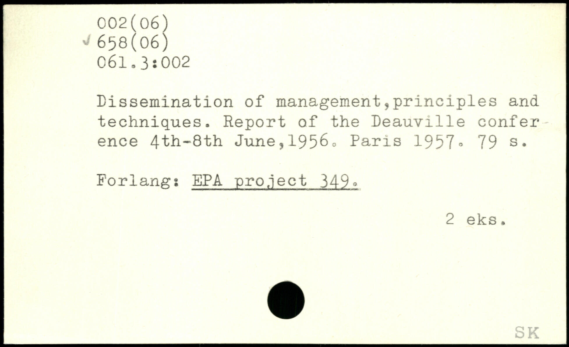 Dissemination of management,principles and techniques. Report of the Deauville confer ence 4th-8th June,1956.