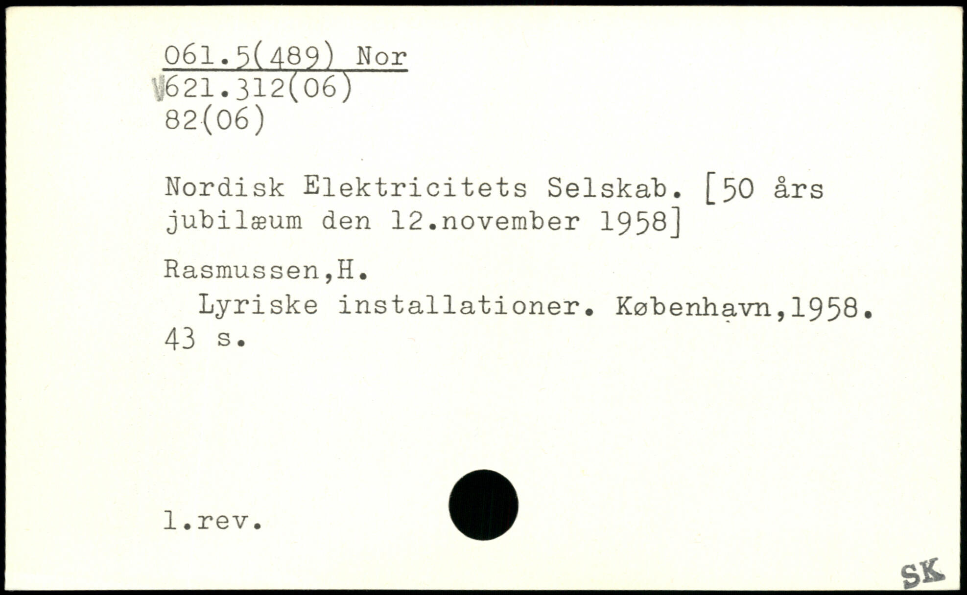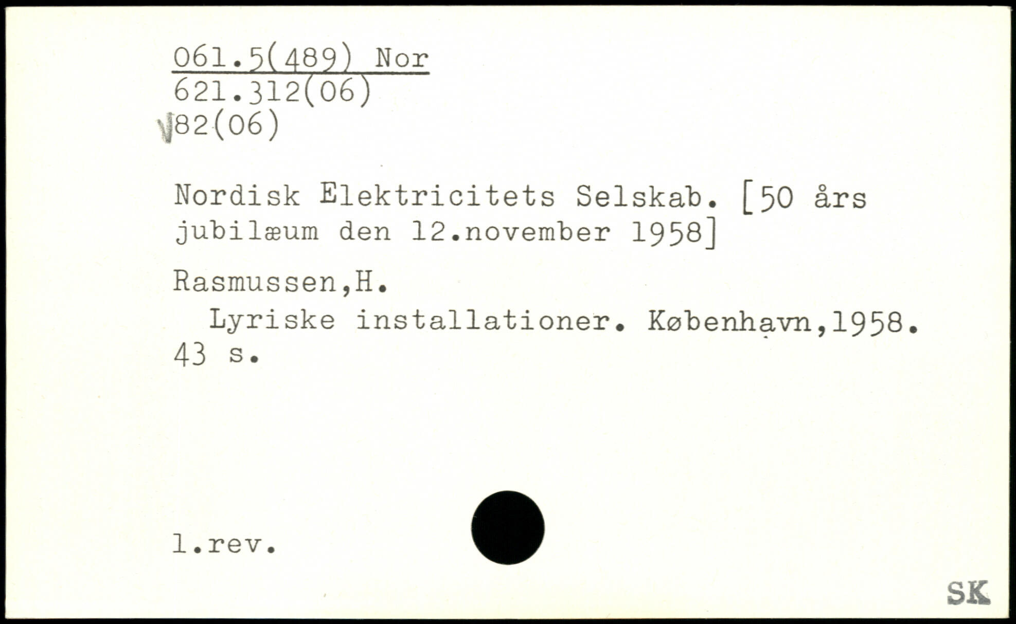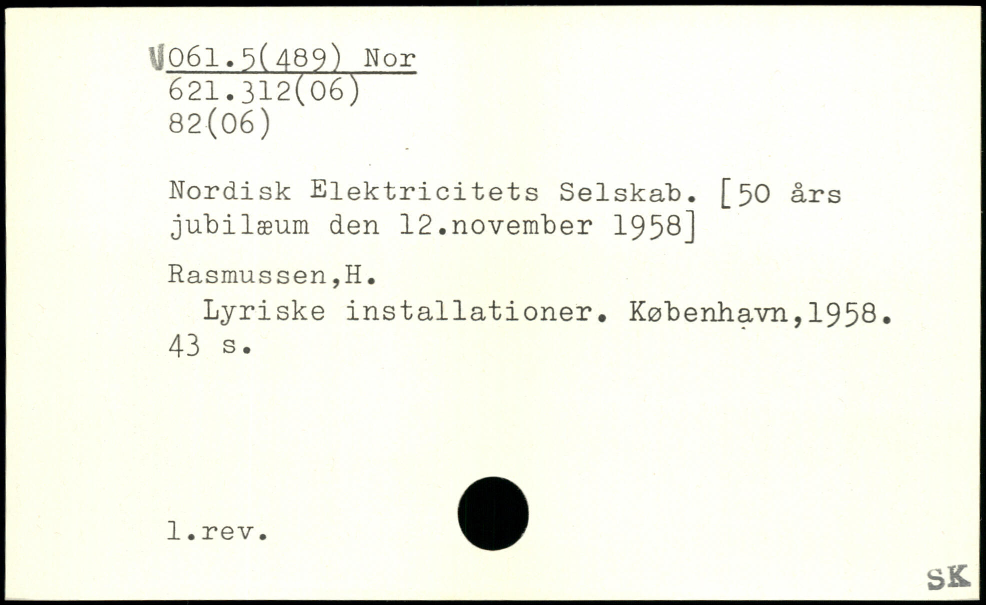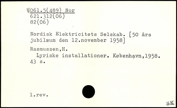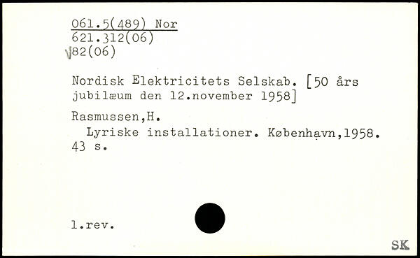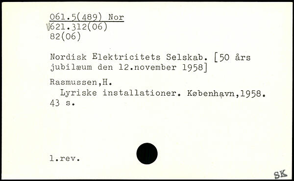 Nordisk Elektricitets Selskab. [50 års jubilæum den 12.november 1958] Rasmussen,H. Lyriske installationer. København,1958.
