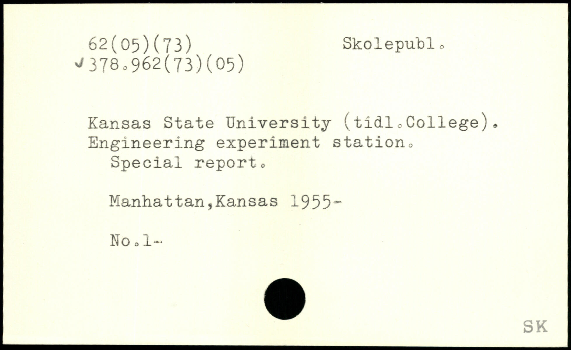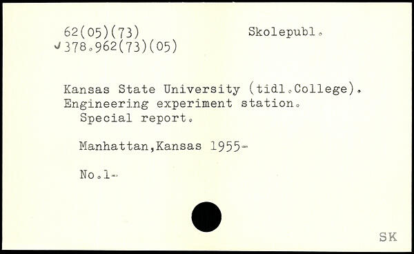 Kansas State University (tidl <, College). Engineering experiment station, Special report, Manhattan,Kansas 1955- No ,1-