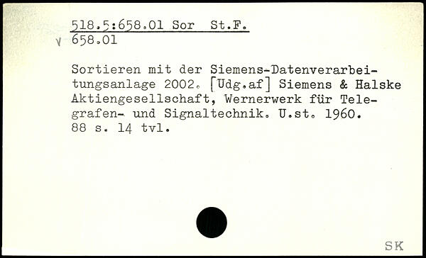 Sortieren, mit der Siemens-Datenverarbeitungsanlage 2002. füdg.af] Siemens &, Halske Aktiengesellschaft, Wernerwerk für Telegrafen- und Signaltechniko U.st0 1960.