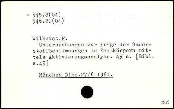 Untersuchungen zur Frage der Sauerstof fbeStimmungen in Festkörpern mittels Aktivierungsanalyse.