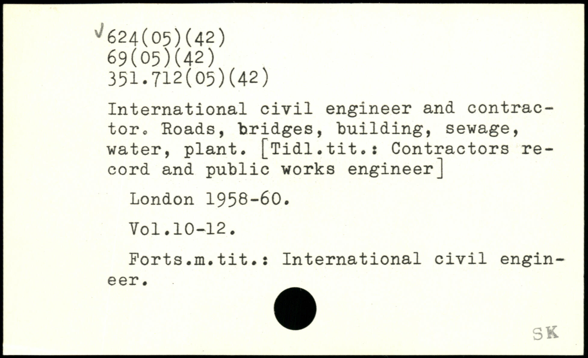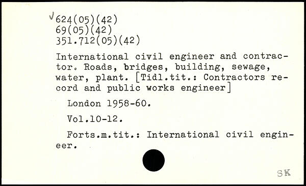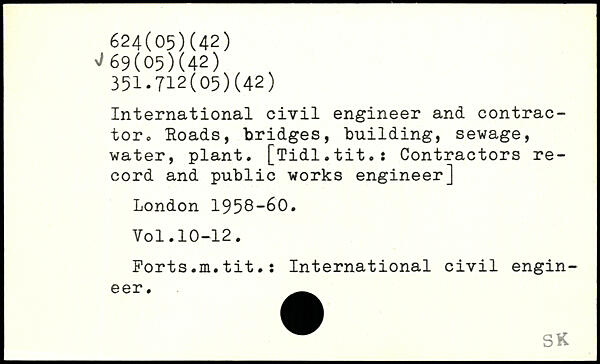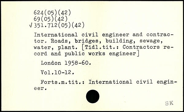 International civil engineer and contractor,, Roads, bridges, building, sewage, water, plant. [Tidl.tit.: Contractors record and public works engineer]