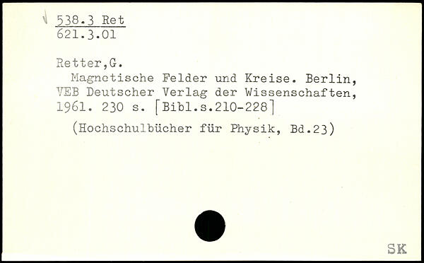 Magnetische Felder und Kreise. Berlin, VEB Deutscher Verlag der Wissenschaften, 1961.