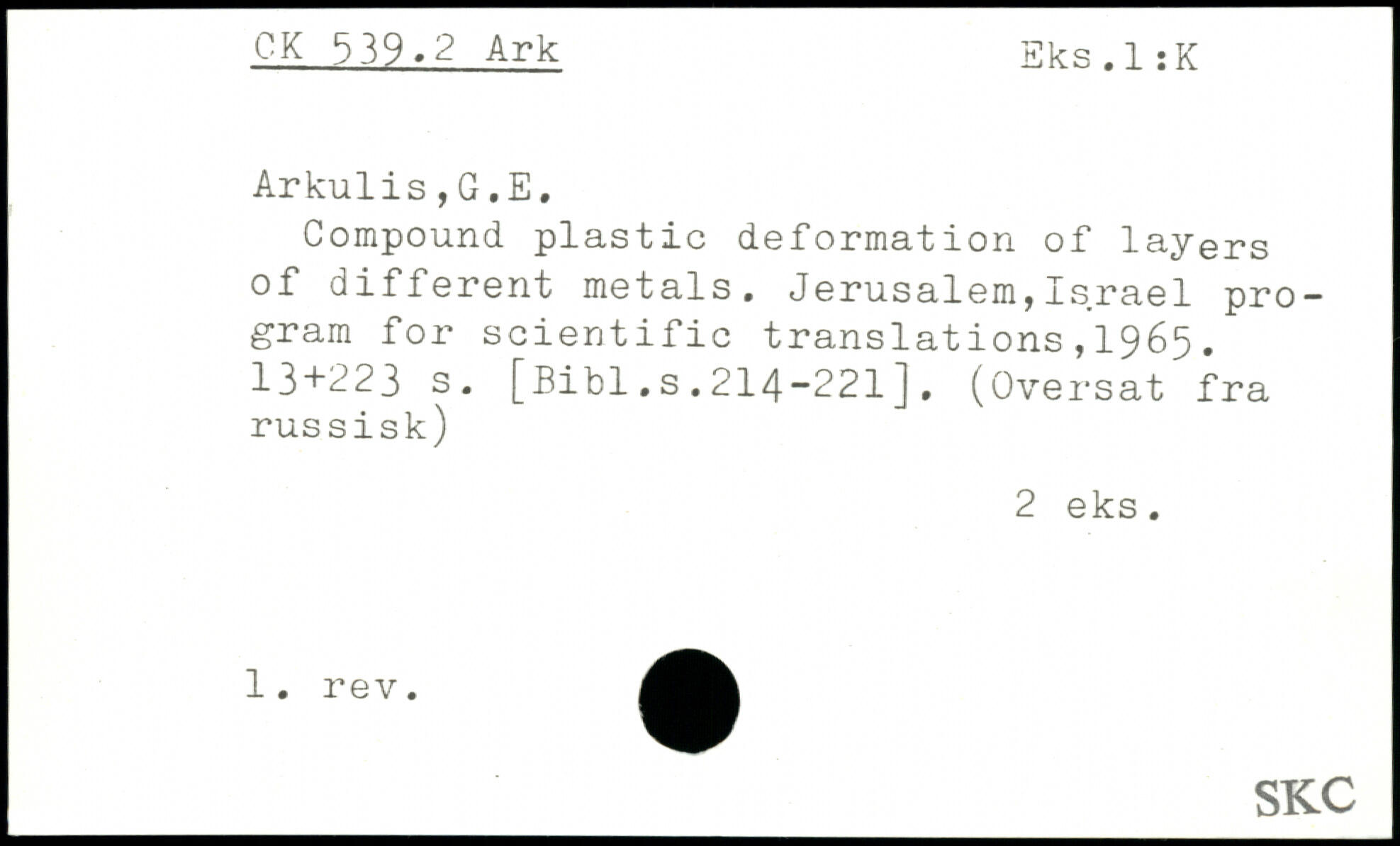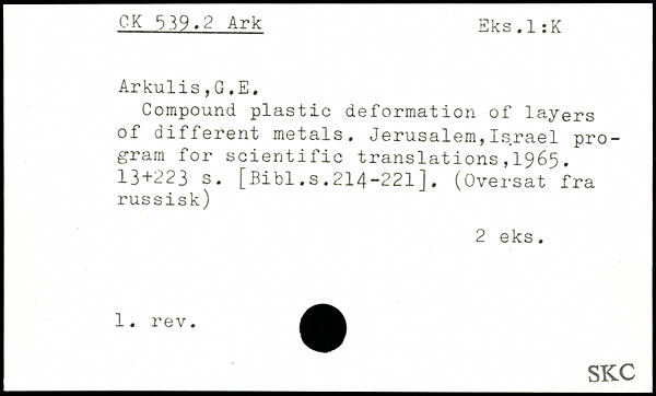 Compound plastic deformation of layers of different metals. Jerusalem,Israel program for scientific translations,1965.
