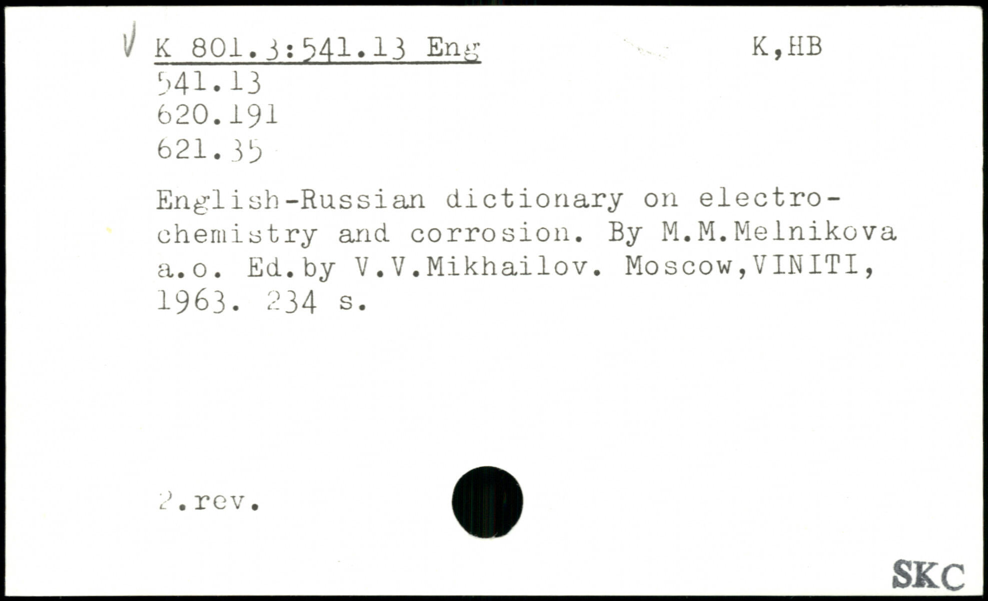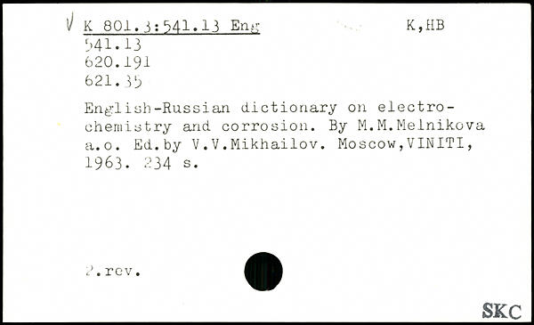 English-Russian dictionary on electrochemistry and corrosion. By M.M.Melnikova a.o. Ed.by V.V.Mikhailov.